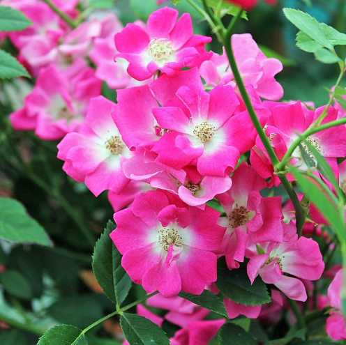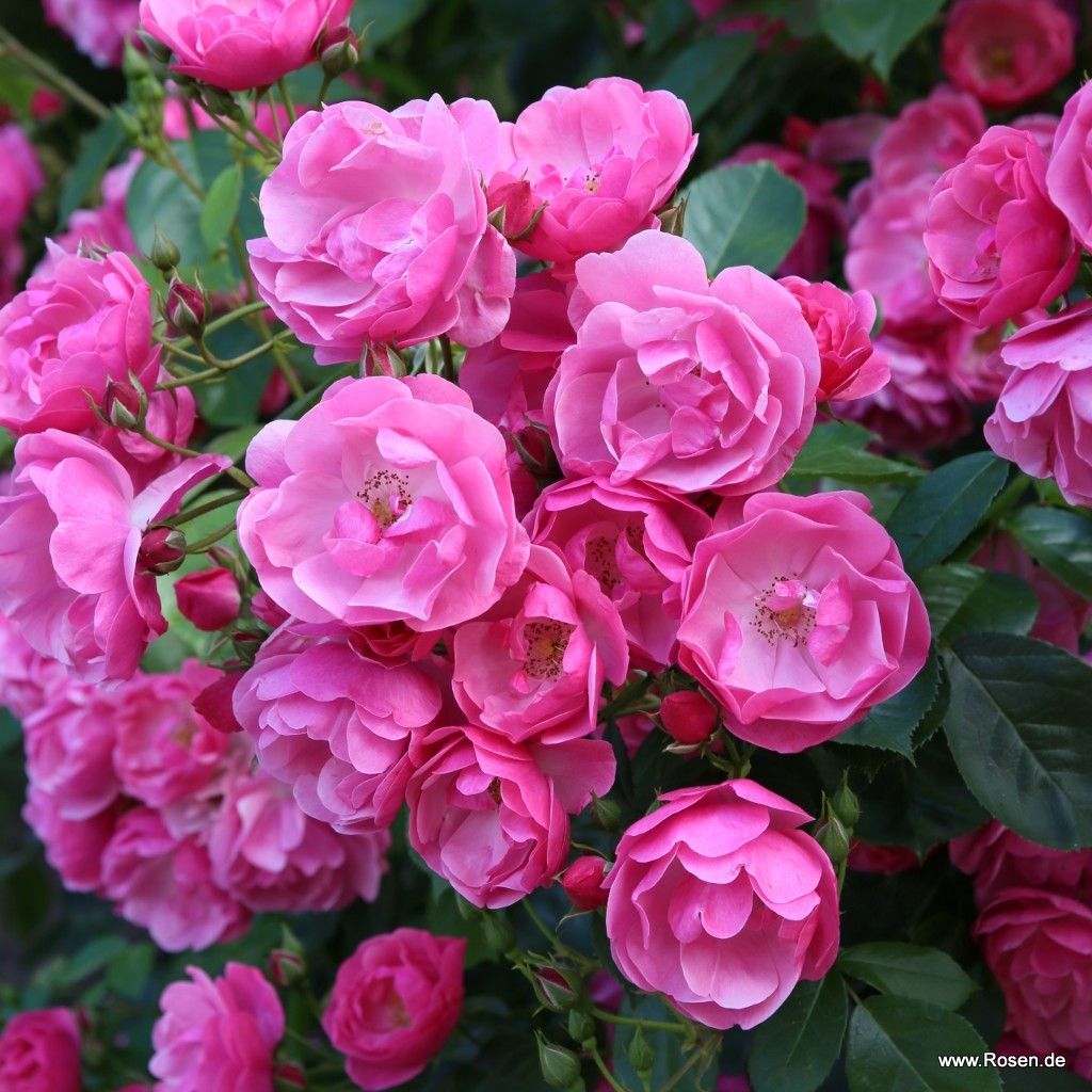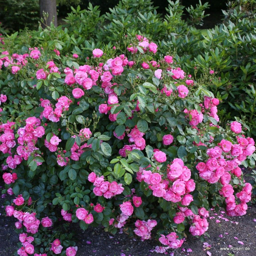 ’Angela®’ hod. W. Kordes’ Söhne 1984. Róża parkowa, dorasta do wysokości 120 cm, cały czas kwitnie i jest pokryta różowymi, średniej wielkości kwiatami, które doskonale prezentują się na tle ciemnozielonych liści. Wykazuje odporność na mróz i jako jedna z nielicznych nadaje się na stanowiska półcieniste.