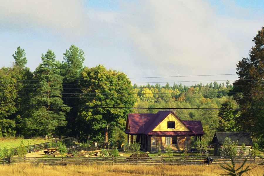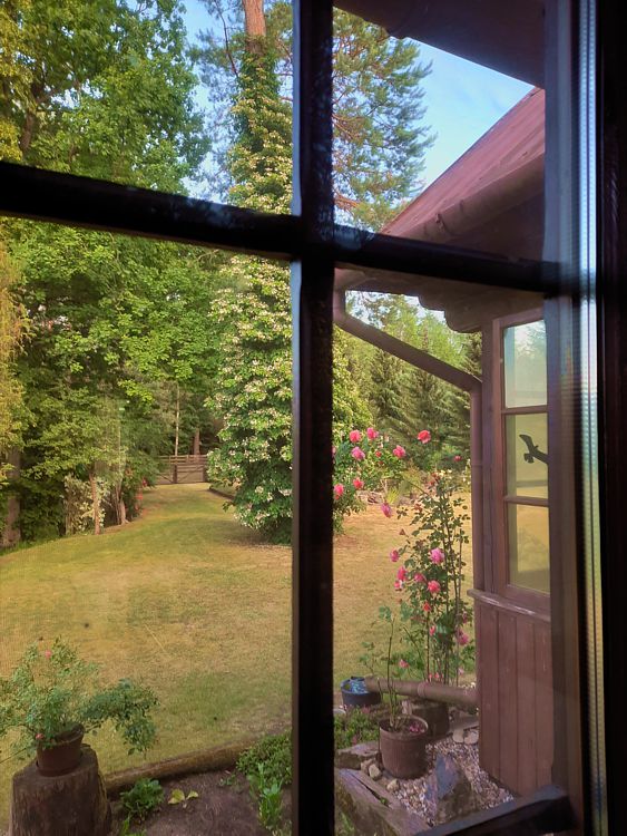 Widok przez drzwi od werandy ogrodowej – w tle widać Kanał Augustowski. Zdjęcie to robiłem siedząc przy stole w dużym pokoju.