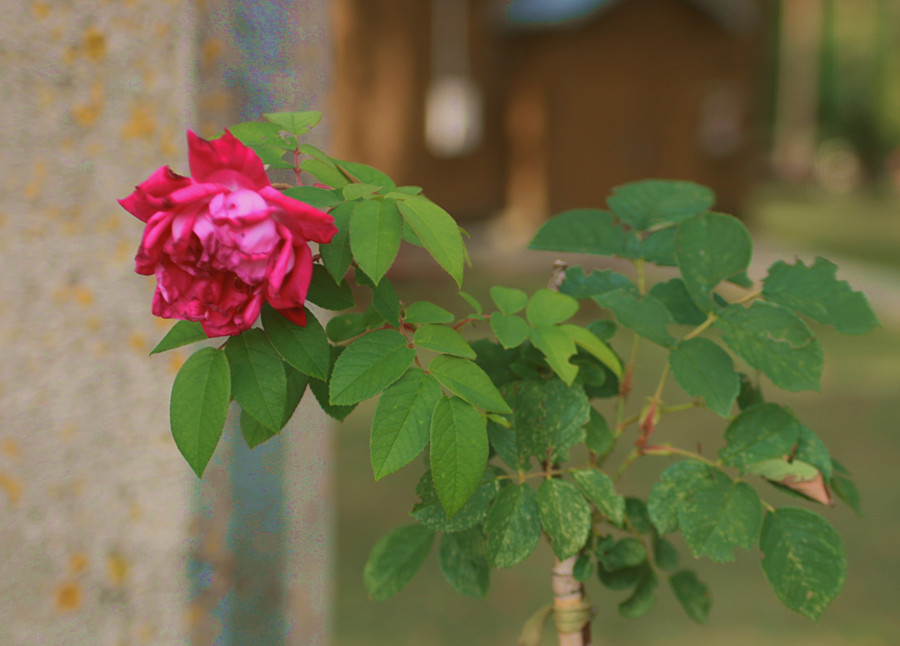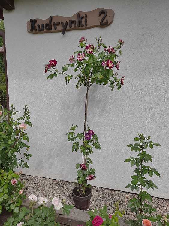 Któregoś roku córka moja Krysia bez przerwy mi marudziła, że do jej okna róże nie zaglądają, a zawsze, jak przyjeżdża z mężem na urlop w sierpniu/wrześniu (grzybobranie), zajmują pokoje na poddaszu. No to wsadziłem 'Sypathie’ i poprowadziłem ją pod ich okno.