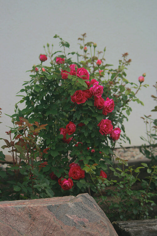 W miejsce pierwszych sosen zostały posadzone róże, które prowadzę w ten sposób, że są calutkie obsypane kwiatami od samej ziemi. Nauczył mnie tego Ojciec, a nazywał to „zawijaniem róży”. Jak to zrobić pokazują poniższe zdjęcia.