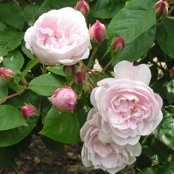 Pochodząca od róży chińskiej niewysoka odmiana pnąca. Delikatne, kuliste, półpełne kwiaty pojawiają się w zwartych gronach i pachną przyjemnie, choć niezbyt intensywnie goździkami z nutą piżma. Rozwijają się ze szkarłatnych pąków, które otwierając się ukazują pastelowo różowe wnętrze z żółtymi pręcikami. Róża ta kwitnie wyjątkowo bujnie i nieprzerwanie przez cały sezon, a szczególnie obficie jesienią.