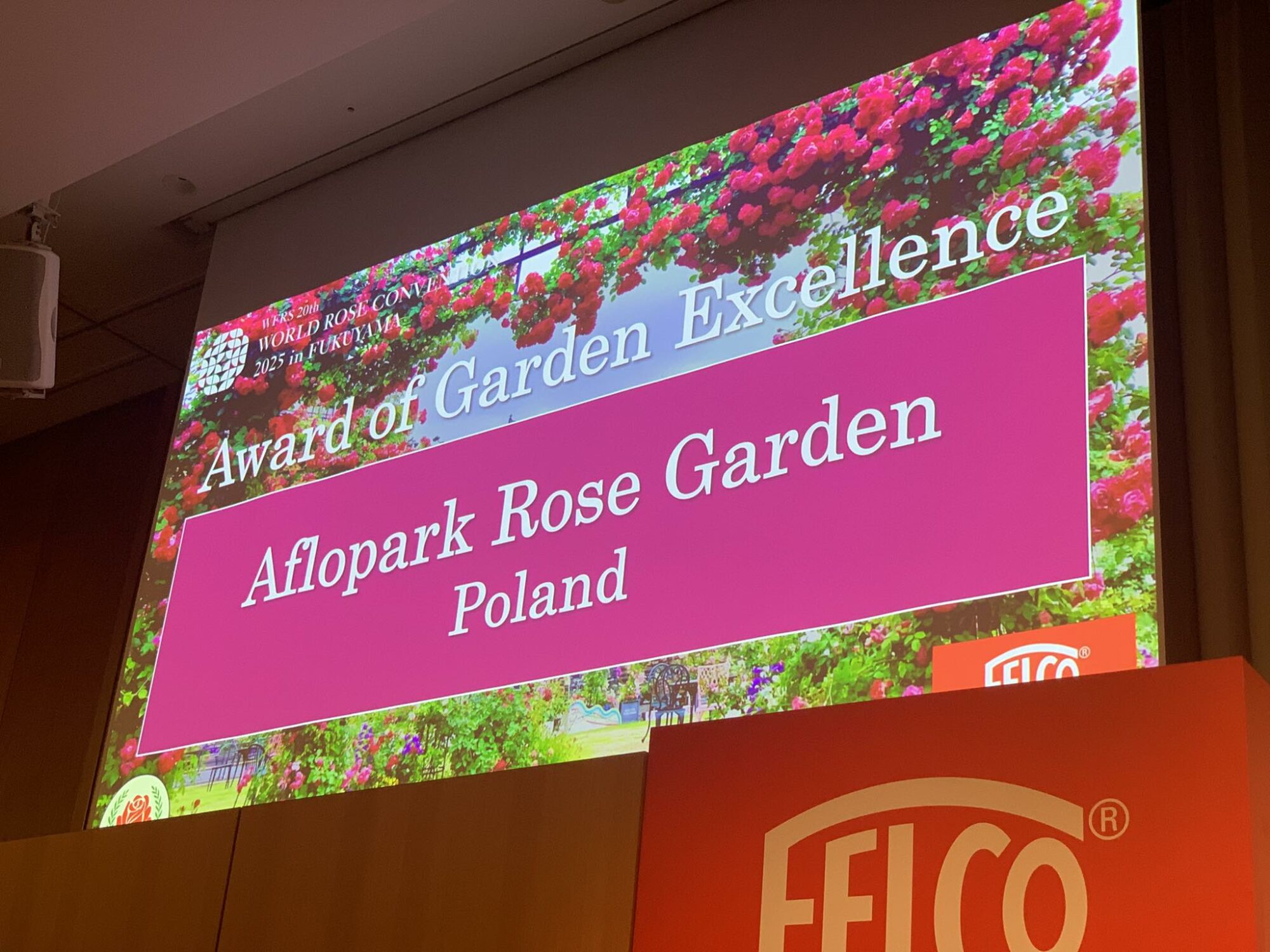 Aflopark Ogród Grażyny i Andrzeja Furmanów w Pabianicach otrzymał zaszczytny tytuł Doskonały Ogród „Award of Garden Excellence” 2025r.! Nagrodę przyznaje raz na trzy lata Światowa Federacja Towarzystw Różanych (WFRS). Ogłoszenie wyników odbyło się podczas 20. Światowego Kongresu Różanego WFRS w Fukujamie w Japonii.