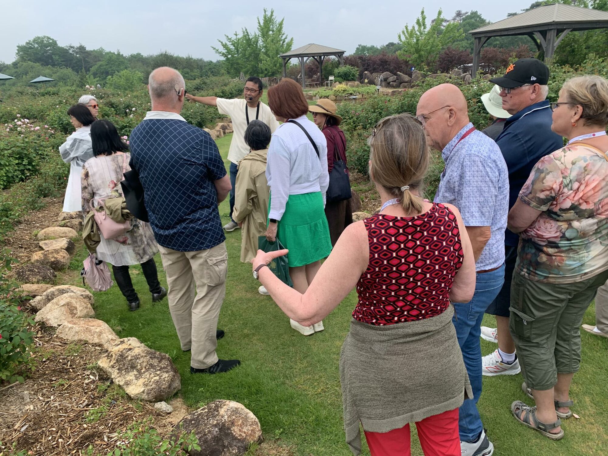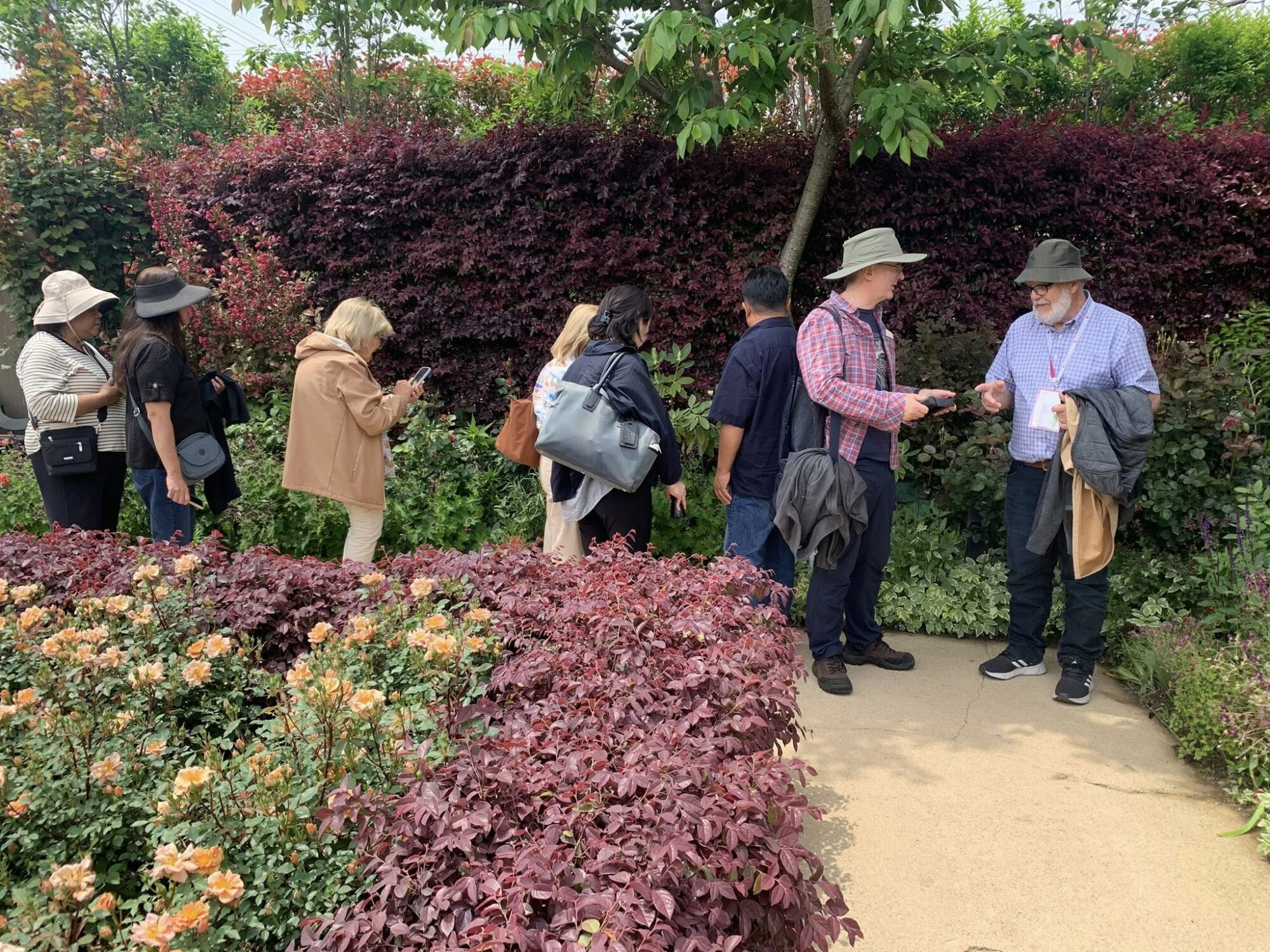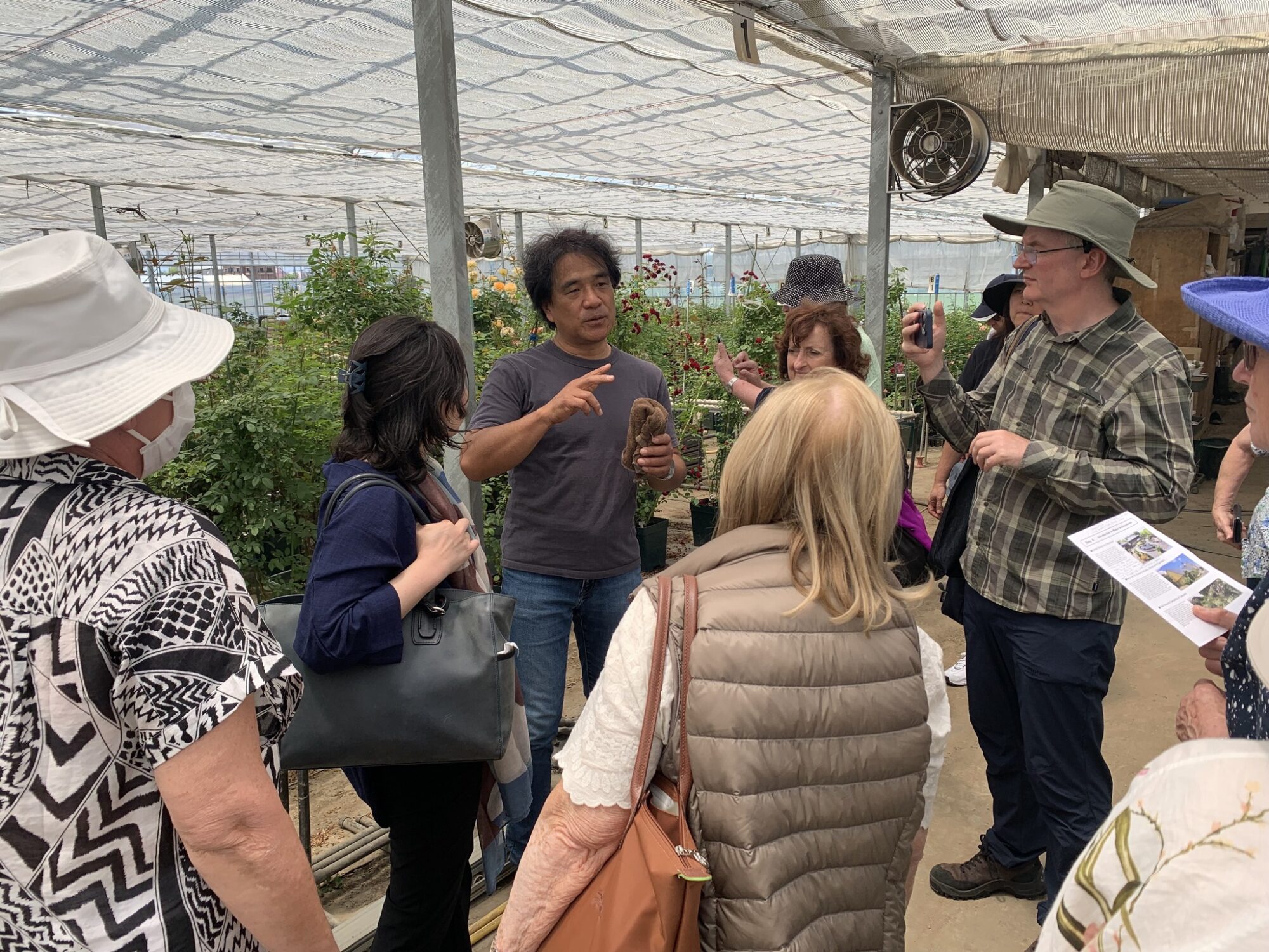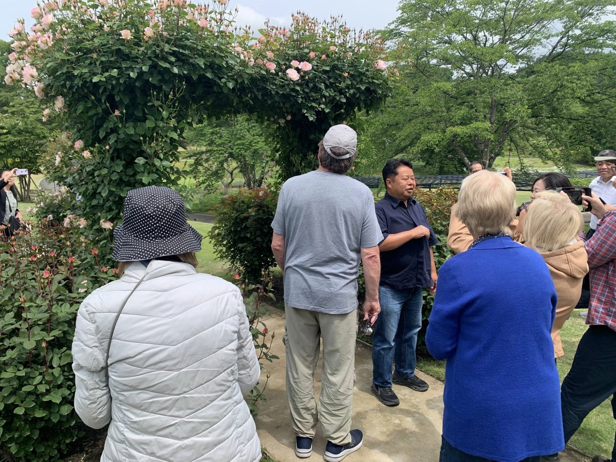 Pan Takashi Kawai, projektant tego ogrodu i hodowca róż jest przewodnikiem wycieczki.