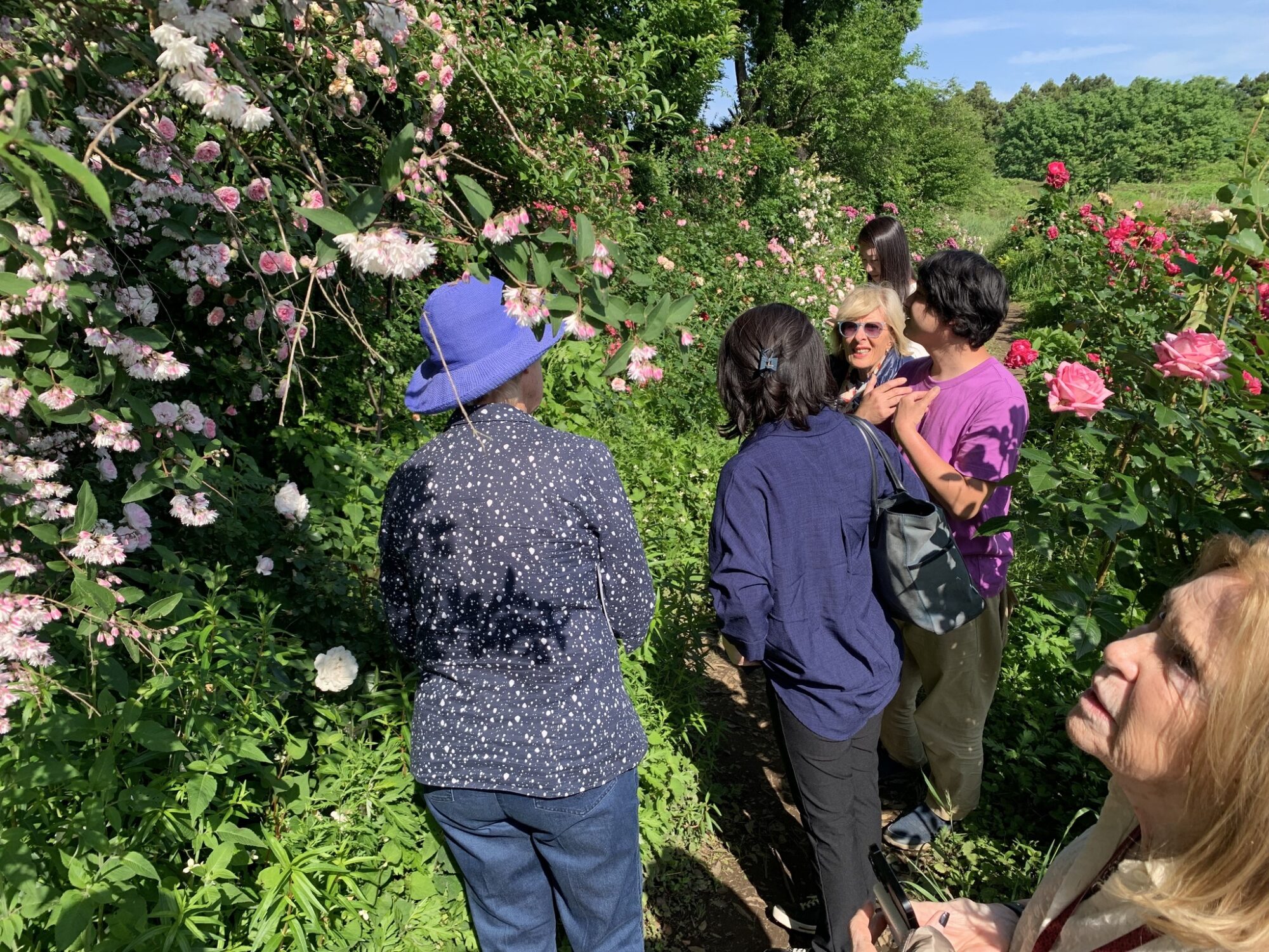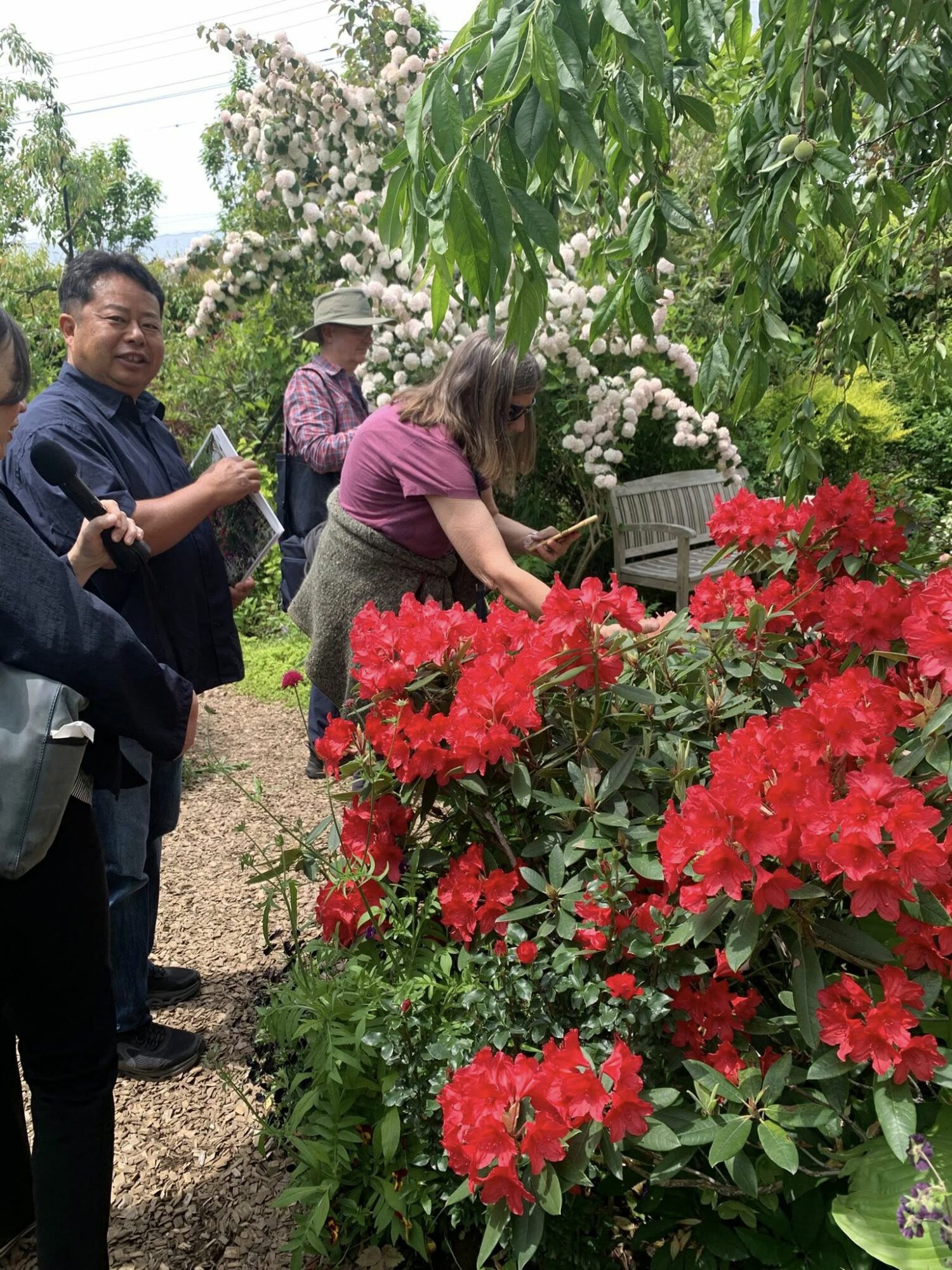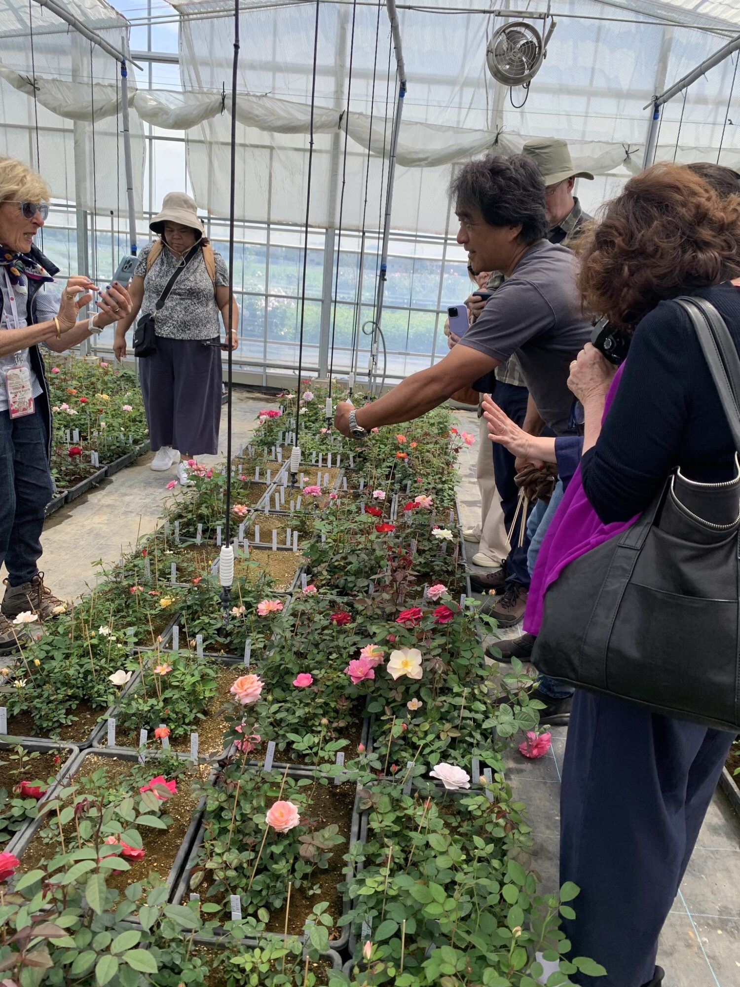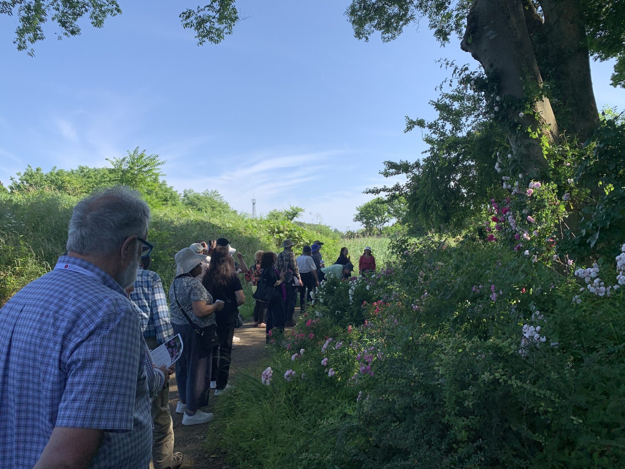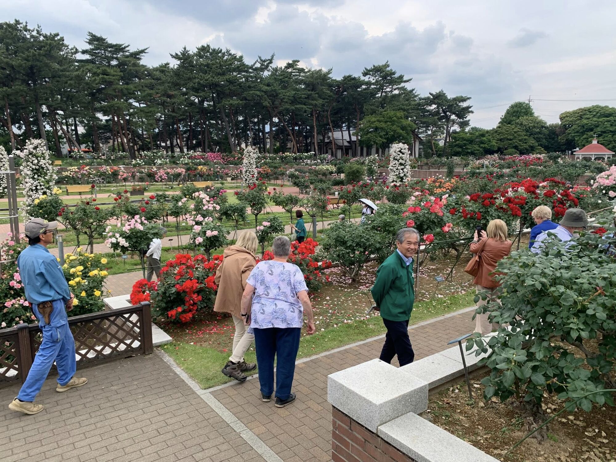 Pan Takashi Kawai, projektant tego ogrodu i hodowca róż jest przewodnikiem wycieczki.