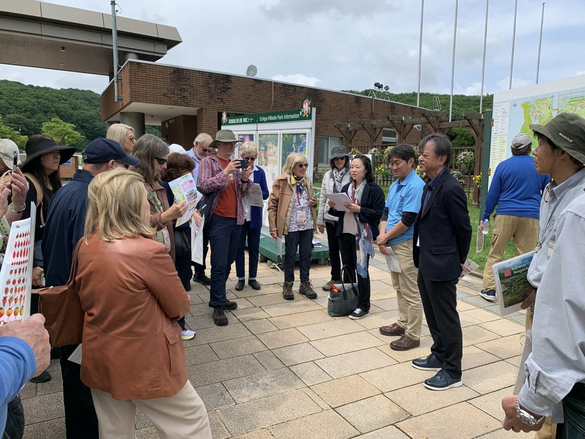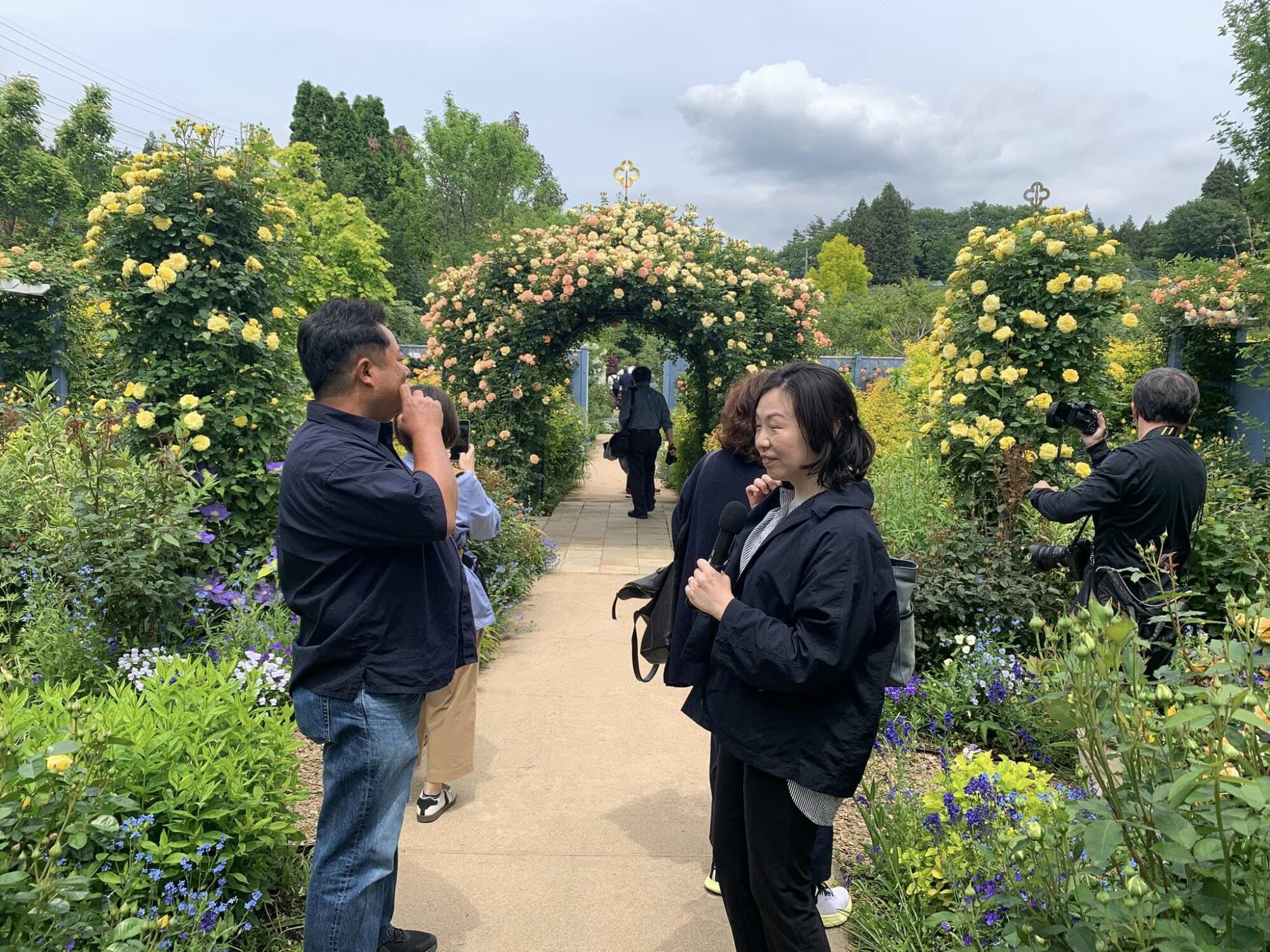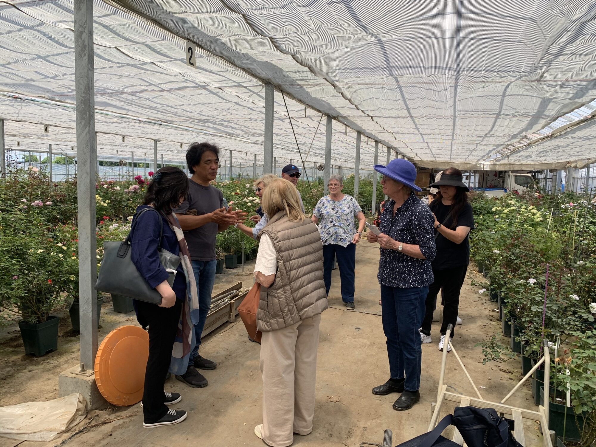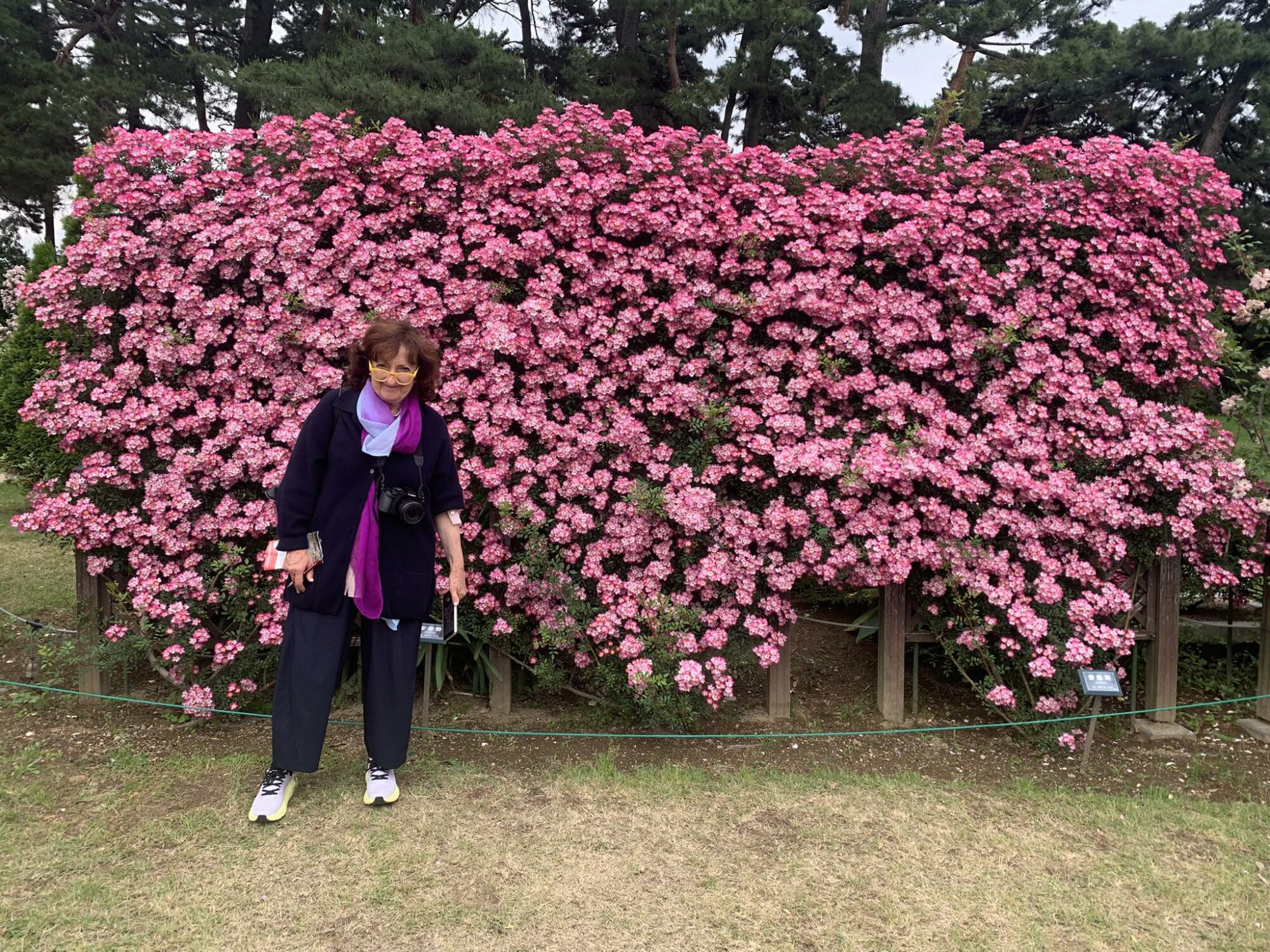 Pan Takashi Kawai, projektant tego ogrodu i hodowca róż jest przewodnikiem wycieczki.