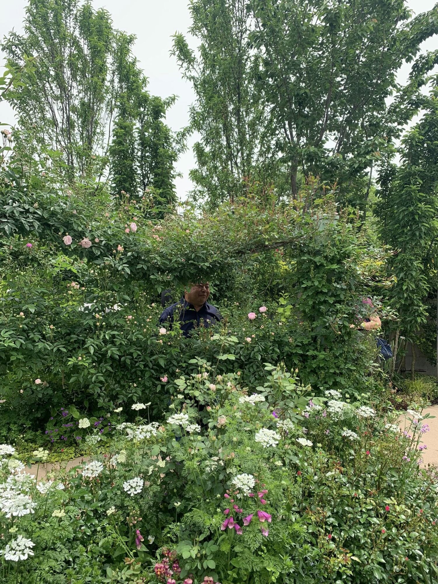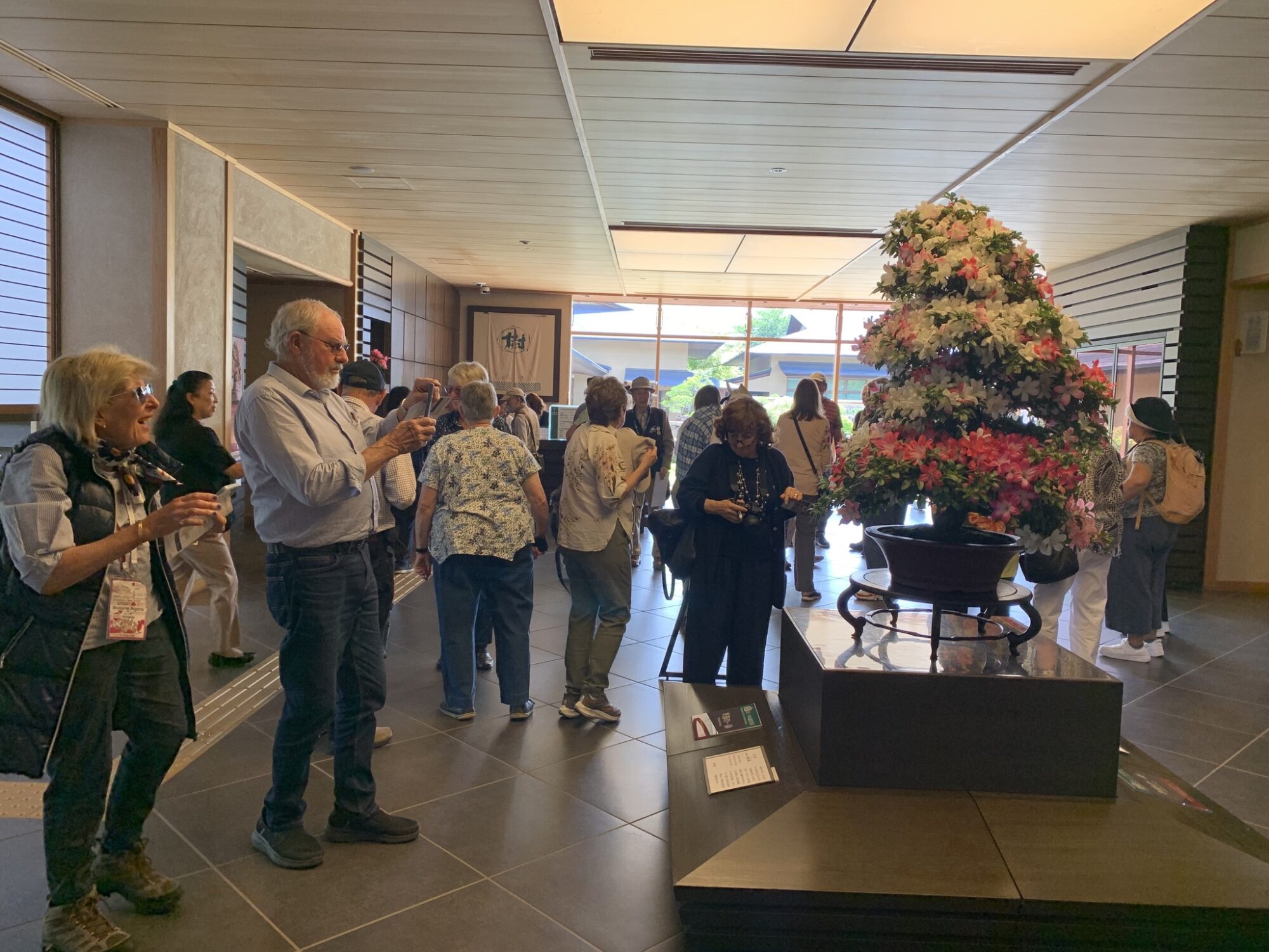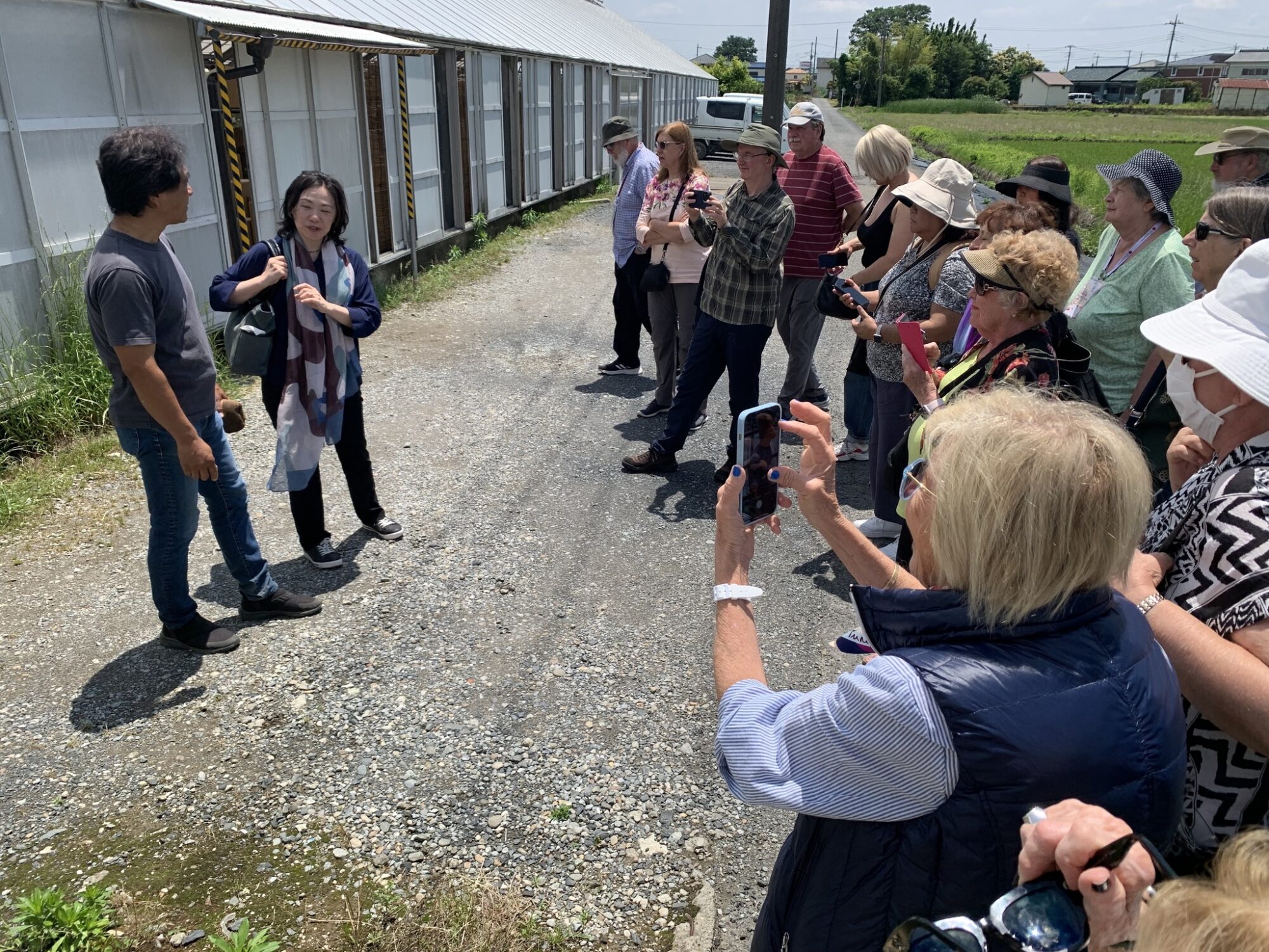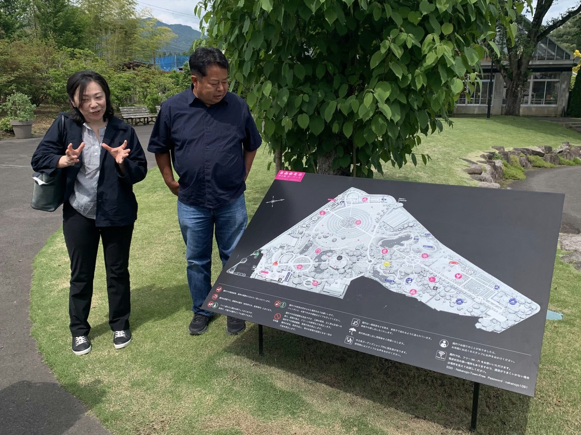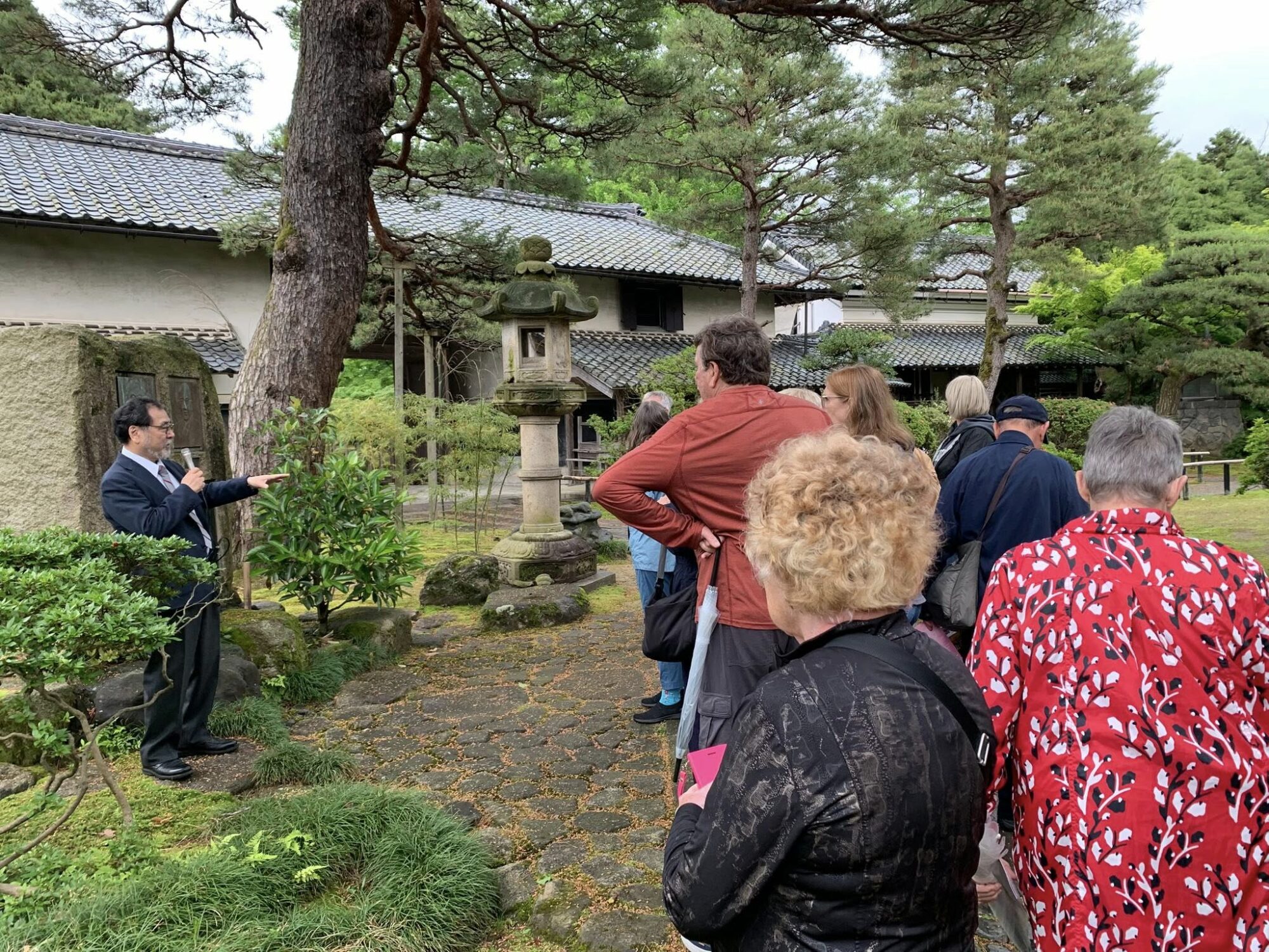 Pan Takashi Kawai, projektant tego ogrodu i hodowca róż jest przewodnikiem wycieczki.
