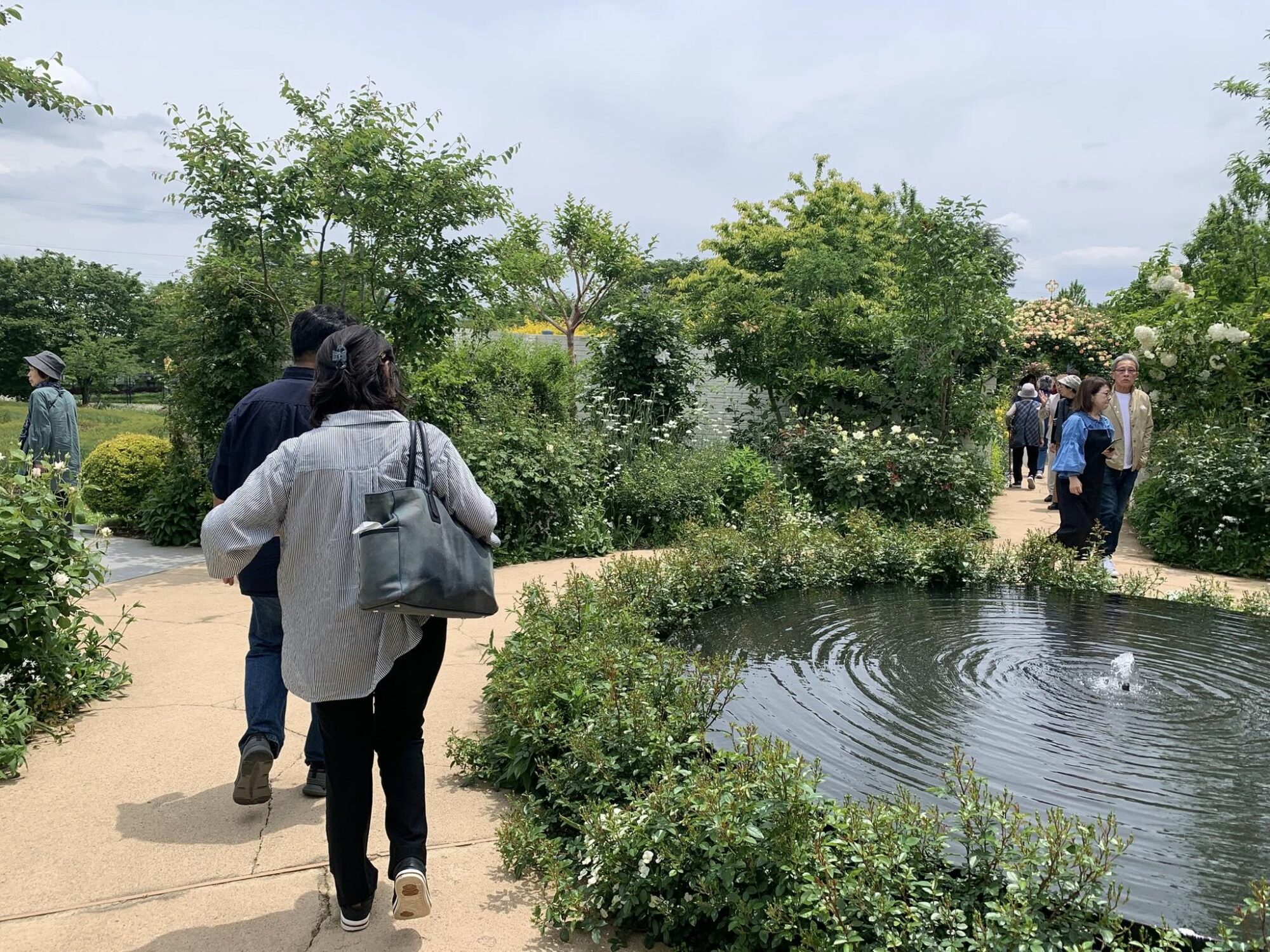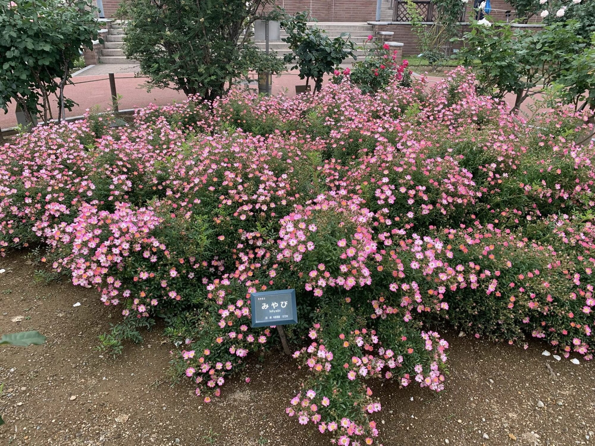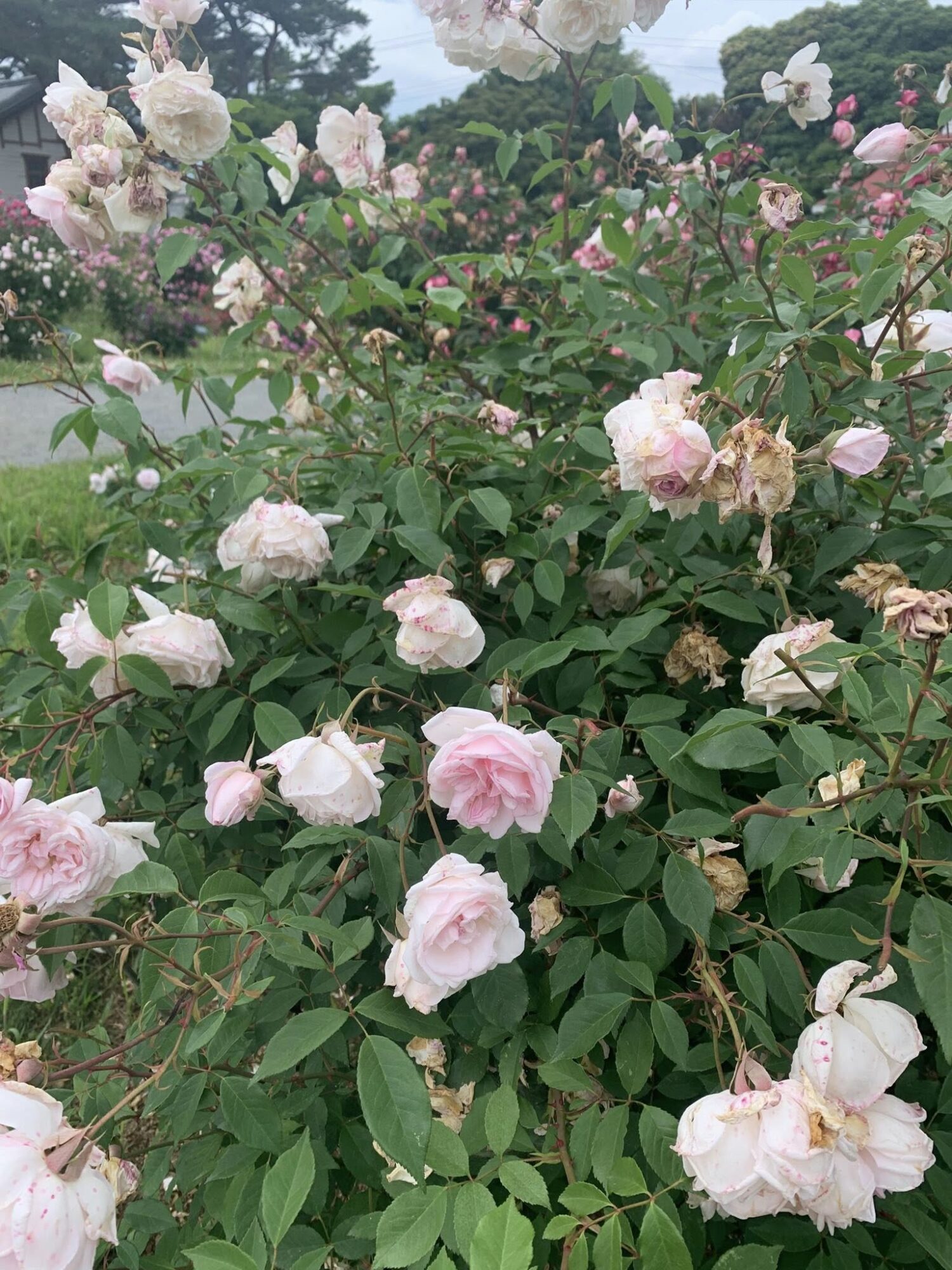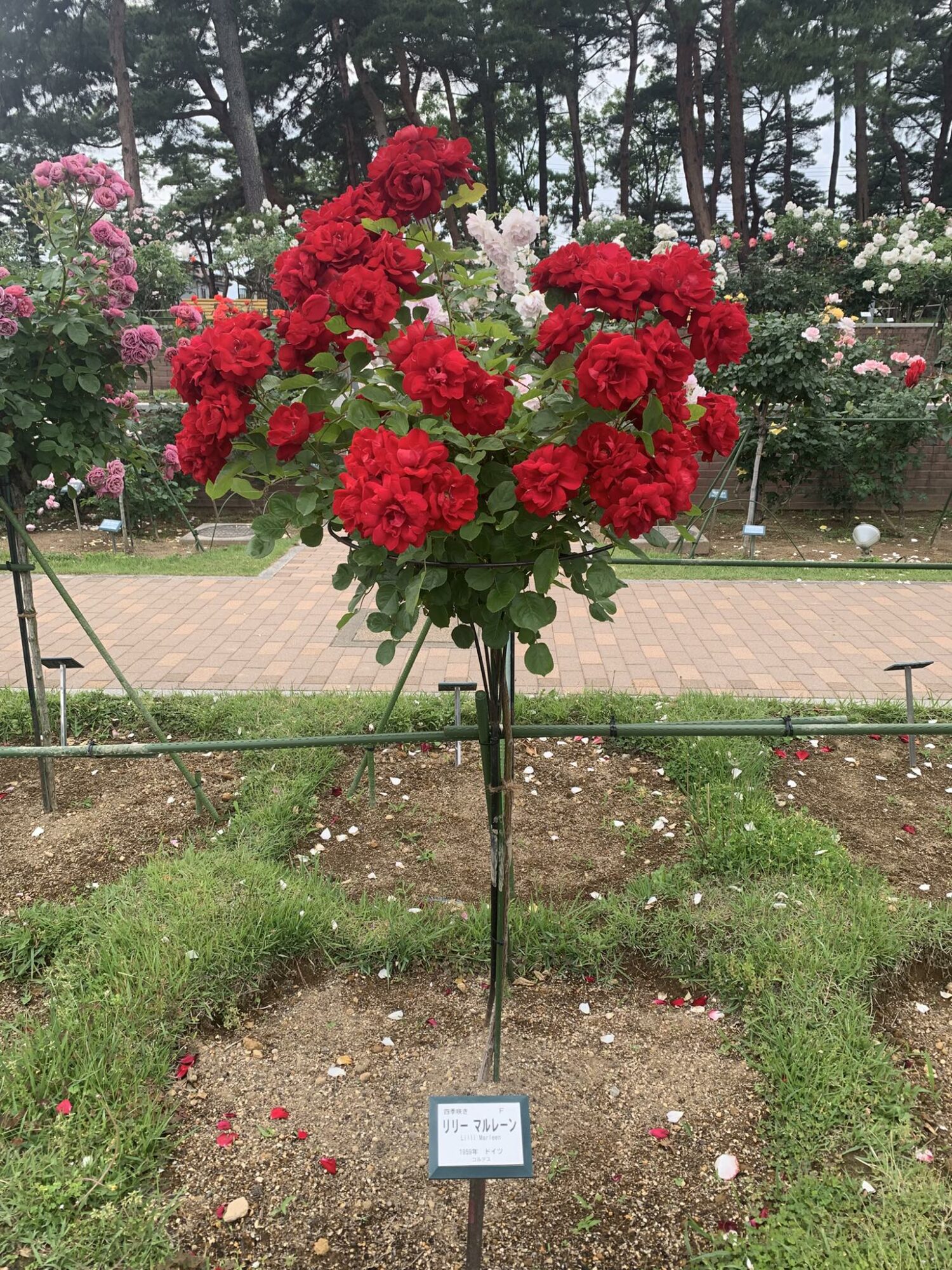 Typowy japoński formalny ogród różany z końca XX wieku.