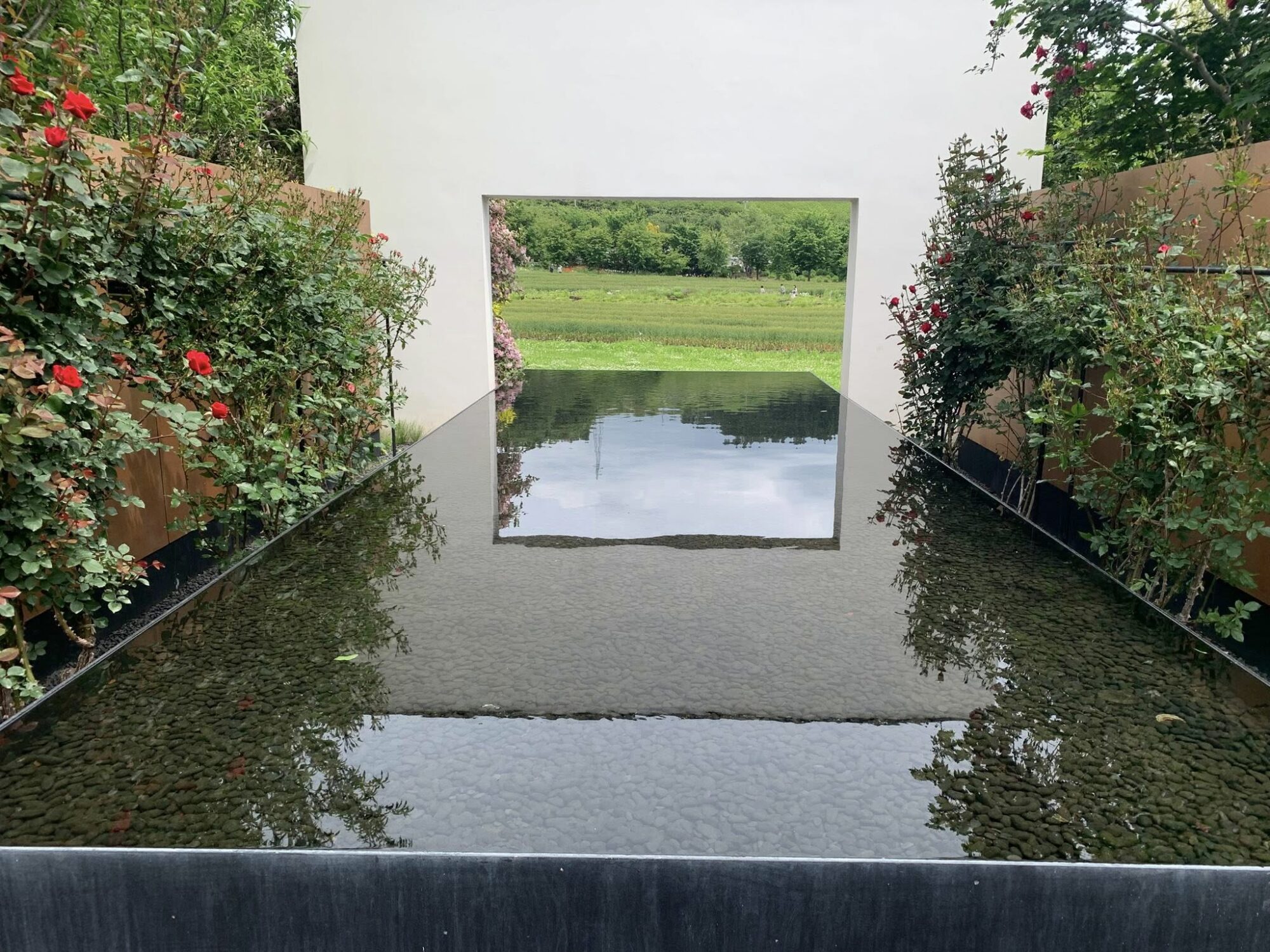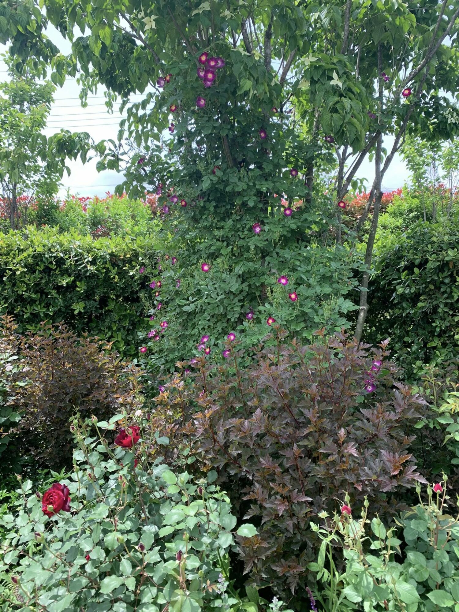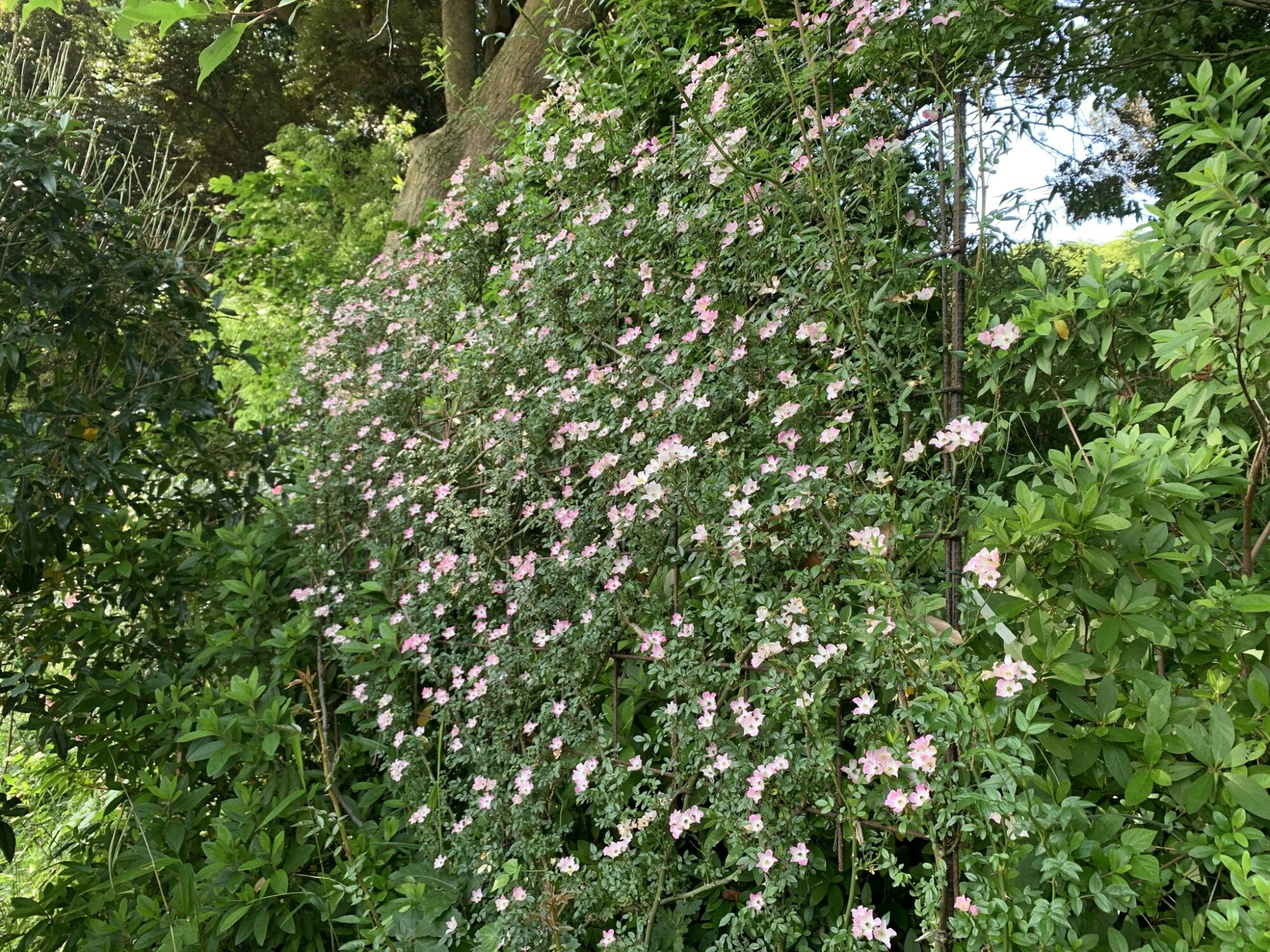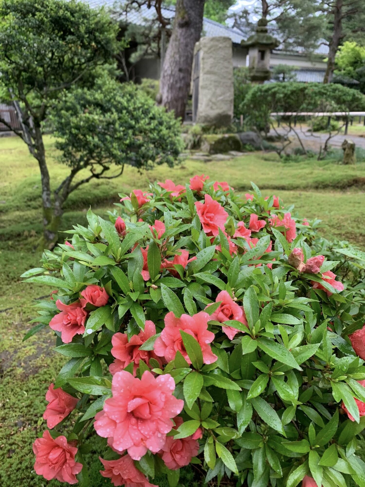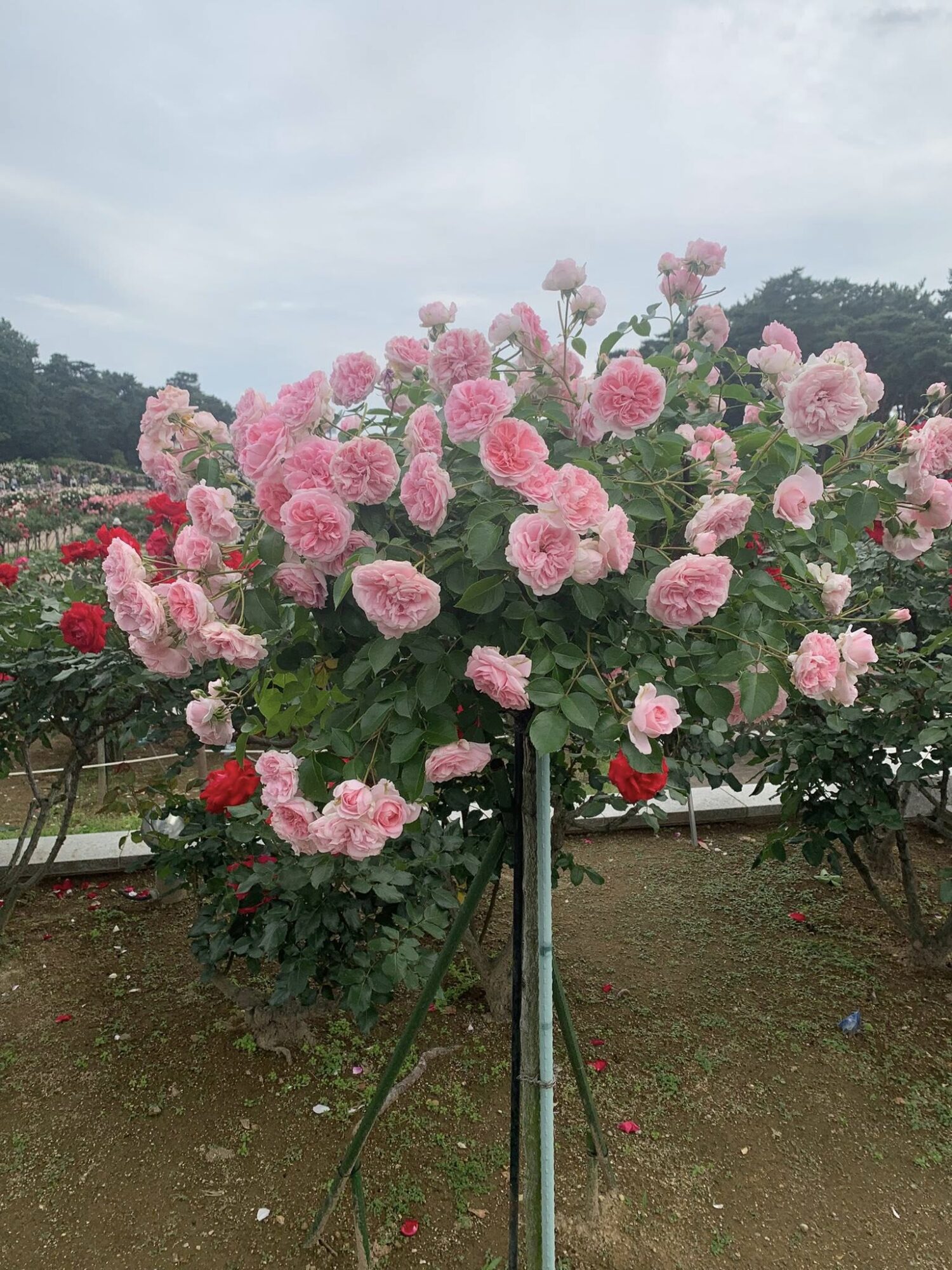 Typowy japoński formalny ogród różany z końca XX wieku.