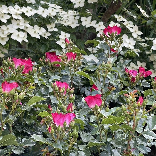 ‘Toscana®’ synonim ‘Gärtnerfreude®’ – róża okrywowa dorastająca do wys. 60 cm, bujnie kwitnąca przez cały sezon. Kwiaty malinowo-czerwone, małe, mocno wypełnione są odporne na słońce, gdyż kolor nie blaknie nawet na upalnym słońcu. Zachowują też piękno po obfitym deszczu i pięknie prezentują się na tle ciemnozielonych liści.