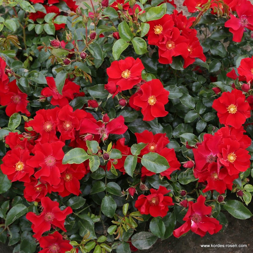 To wyjątkowa odmiana o ciągłym kwitnieniu doskonale przystosowana jest do uprawy w doniczkach na balkonie czy tarasie, ale także w ogrodzie, gdzie wspaniale komponuje się z innymi roślinami. Kwiaty są czerwone, półpełne, lekko pachnące, kwitnące przez cały sezon. Niewielki krzew, który osiąga wymiary wys. 25 szer. 35 cm. Wytrzymuje temperatury do -23C, jest wyjątkowo odporna na choroby.