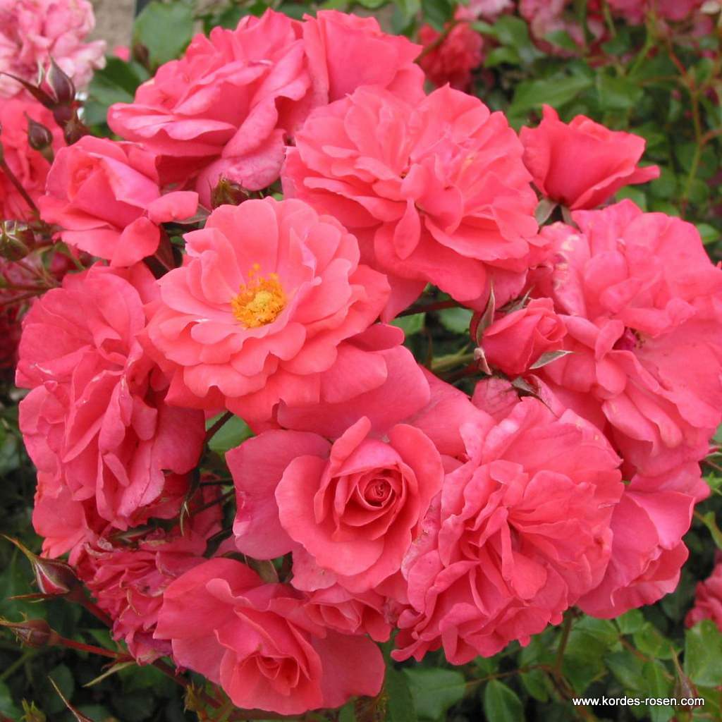 ‘Schöne Koblenzerin®’ -urocza róża rabatowa, wprowadzona na rynek w 2011r. przez firmę W. Kordes‘ Söhne. Zdrowa i obficie kwitnąca przez całe lato, aż do mrozów. Wytrzymała, odporna na niekorzystne warunki pogodowe i łatwa w pielęgnacji, bardzo dobrze się krzewi tworząc kompaktowe, gęste krzewy. Ślicznotka z Koblencji przyciągają spojrzenie charakterystyczną kolorystyką płatków – jaskrawo czerwonych z kremowym rewersem. Kwiaty bardzo trwałe, długo zachowują swój kształt i kolor na krzewie i po ścięciu do wazonu. Ślicznie prezentuje się w donicach.