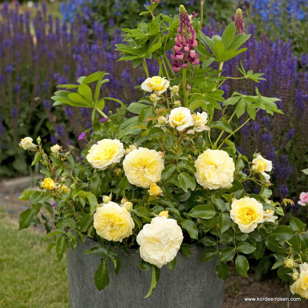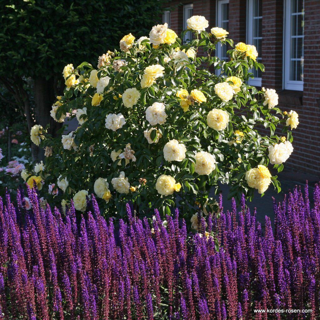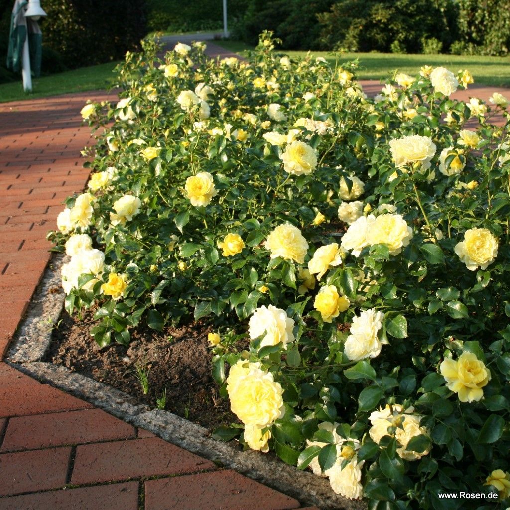‘Solero®’ – róża rabatowa, Bogato wypełnione, cytrynowo-żółte miseczki kwiatów doskonale prezentują się w kompozycji z innymi roślinami oraz w kombinacji z ciemnozielonym, błyszczącym, niezwykle zdrowym ulistnieniem. Krzew dorasta do 60 cm wysokości i kwitnie przez cały sezon.