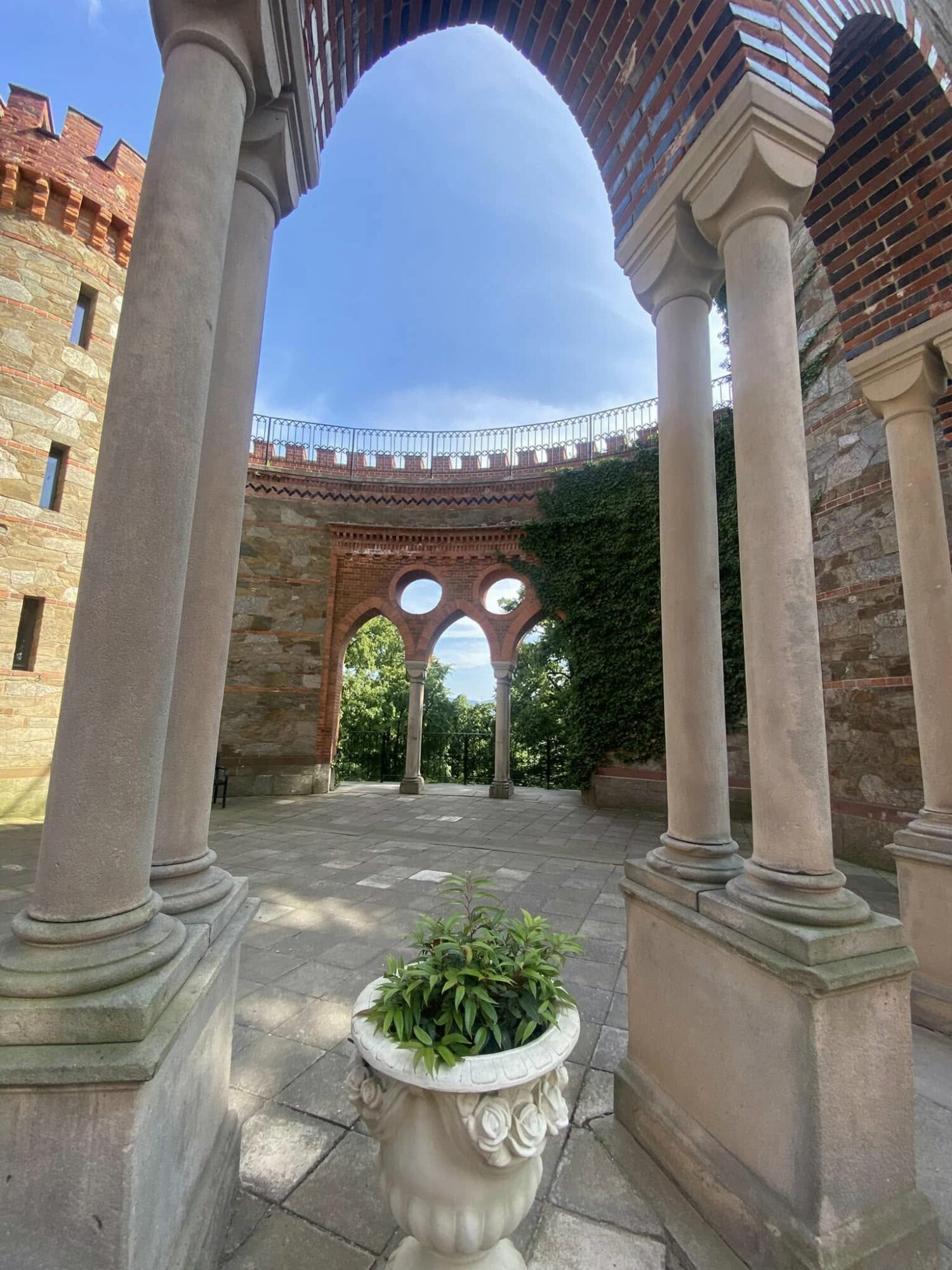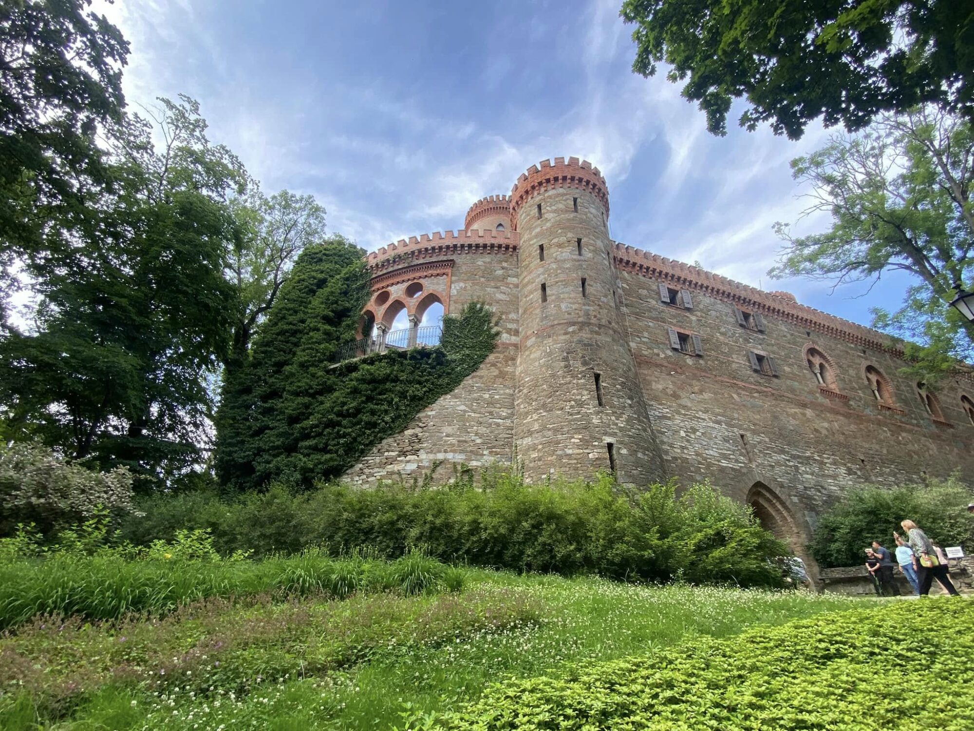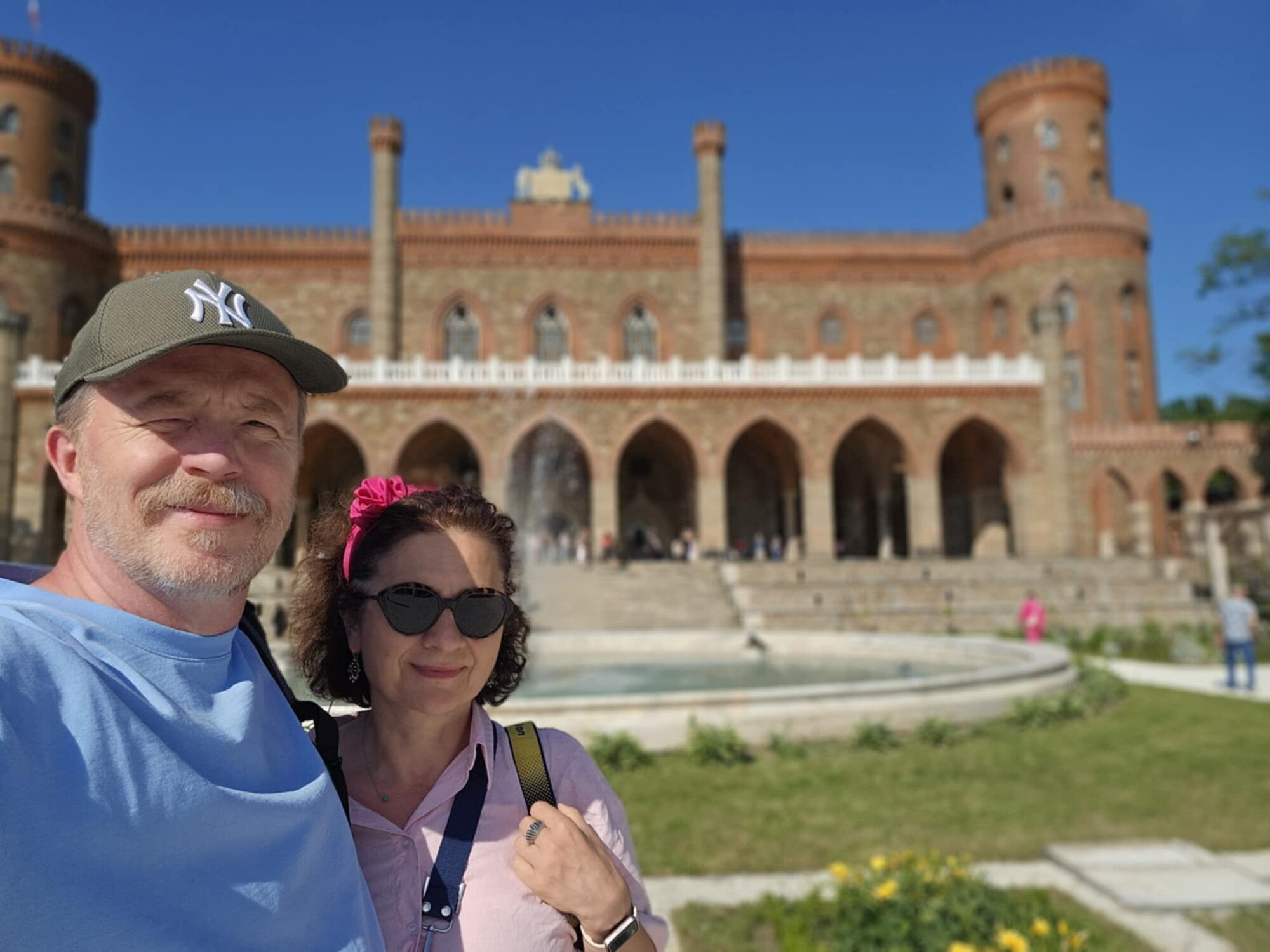 Pałac Marianny Orańskiej w Kamieńcu Ząbkowickim to skala XXL. Budowla w stylu neogotyckim położona na wzgórzu, w parku pełnym okazałych drzew. Do Zamku prowadzi pnąca się pod górę wybrukowana granitowym łupkiem droga. Z jej poziomu Zamek jest jeszcze wyższy. Budowę pałacu zleciła Marianna Orańska – córka króla Niderlandów Wilhelma I Orańskiego i jego pierwszej żony – Fryderyki Luizy Pruskiej, żona najmłodszego syna króla Prus – Albrechta Hohenzollerna. Marianna – kobieta wykształcona, inteligentna, przedsiębiorcza i na dokładkę piękna, szczęścia w miłości nie miała… Historia to dłuższa, burzliwa i smutna. Marianna dziedziczy po matce majątek w ziemi kłodzkiej i tam pomnaża go sprawnie – inwestuje w kolejne ziemie, lasy i rozmaite przedsięwzięcia biznesowe – od pieca hutniczego, poprzez farmy krów, hodowlę pstrąga, cegielnię, kamieniołomy marmuru (któż nie zna ,,białej marianny”?, a jest też zielona), po hutę szkła kryształowego w Stroniu (kupiłam tam kiedyś piękne kieliszki i wazony na kwiaty – jak jeszcze istniała ). Marianna dba o ludzi i rozwój regionu – buduje drogi, szpital, ochronkę, a przede wszystkim daje pracę. Projekt pałacu zleca architektowi Karlowi Schinkelowi (autor Zamku w Książu), ogród tworzy Peter Josef Lenne… Zatem same ówczesne tuzy… Budowa rozpoczyna się w 1839 r. i trwa z przerwami 33 lata. Kosztuje równowartość 3 ton złota… Warto zagłębić się historię Marianny – jej siłę charakteru, determinację, talenty i nieszczęśliwą miłość, ale też odwagę w dążeniu do zachowania godności. Tymczasem wracam do wrażeń z wizyty w pałacu i ogrodzie. Splądrowany pod koniec wojny, zniszczony przez Armię Czerwoną, nadpalony i rozgrabiony z wyposażenia jest obecnie w zaawansowanym stopniu odrestaurowany i to naprawdę jest imponująca robota! Ogród jest już prawie gotowy – dorasta.