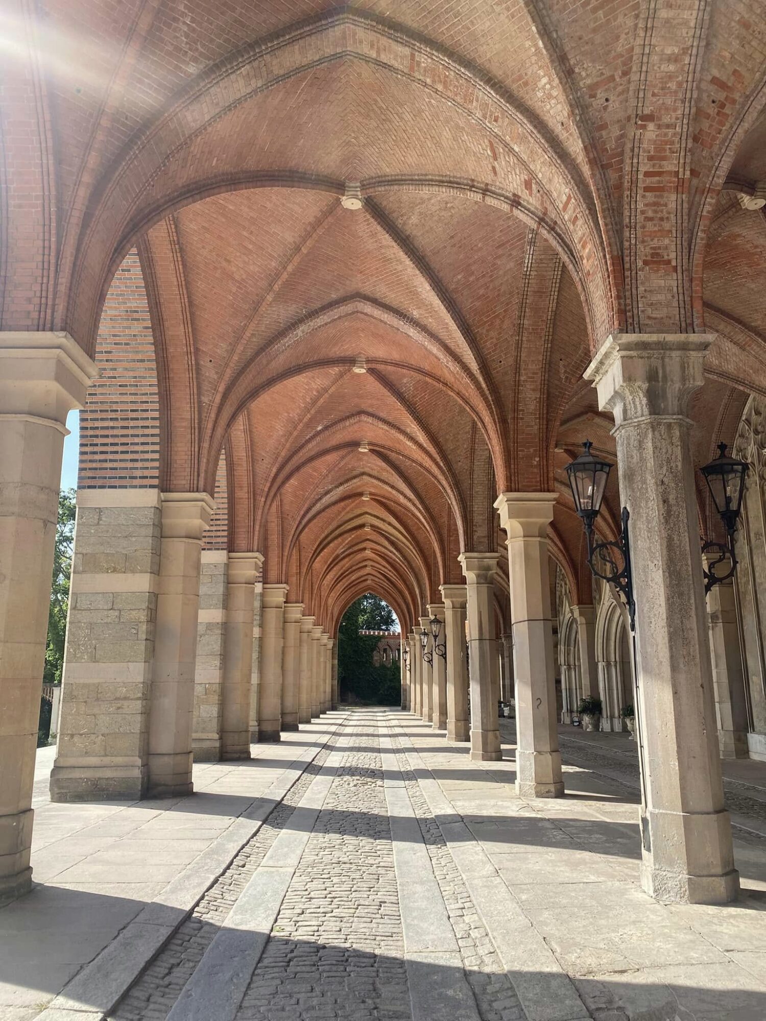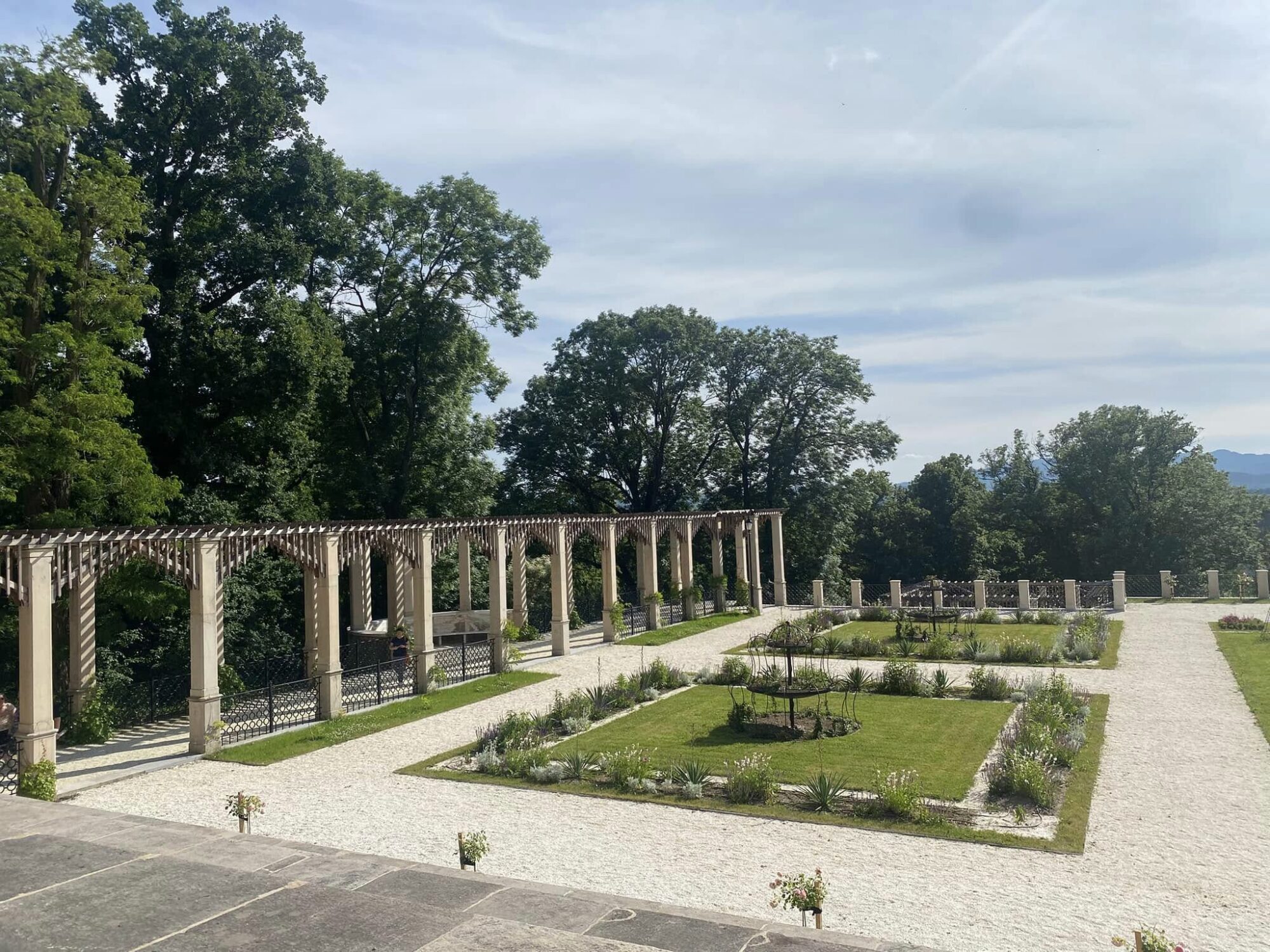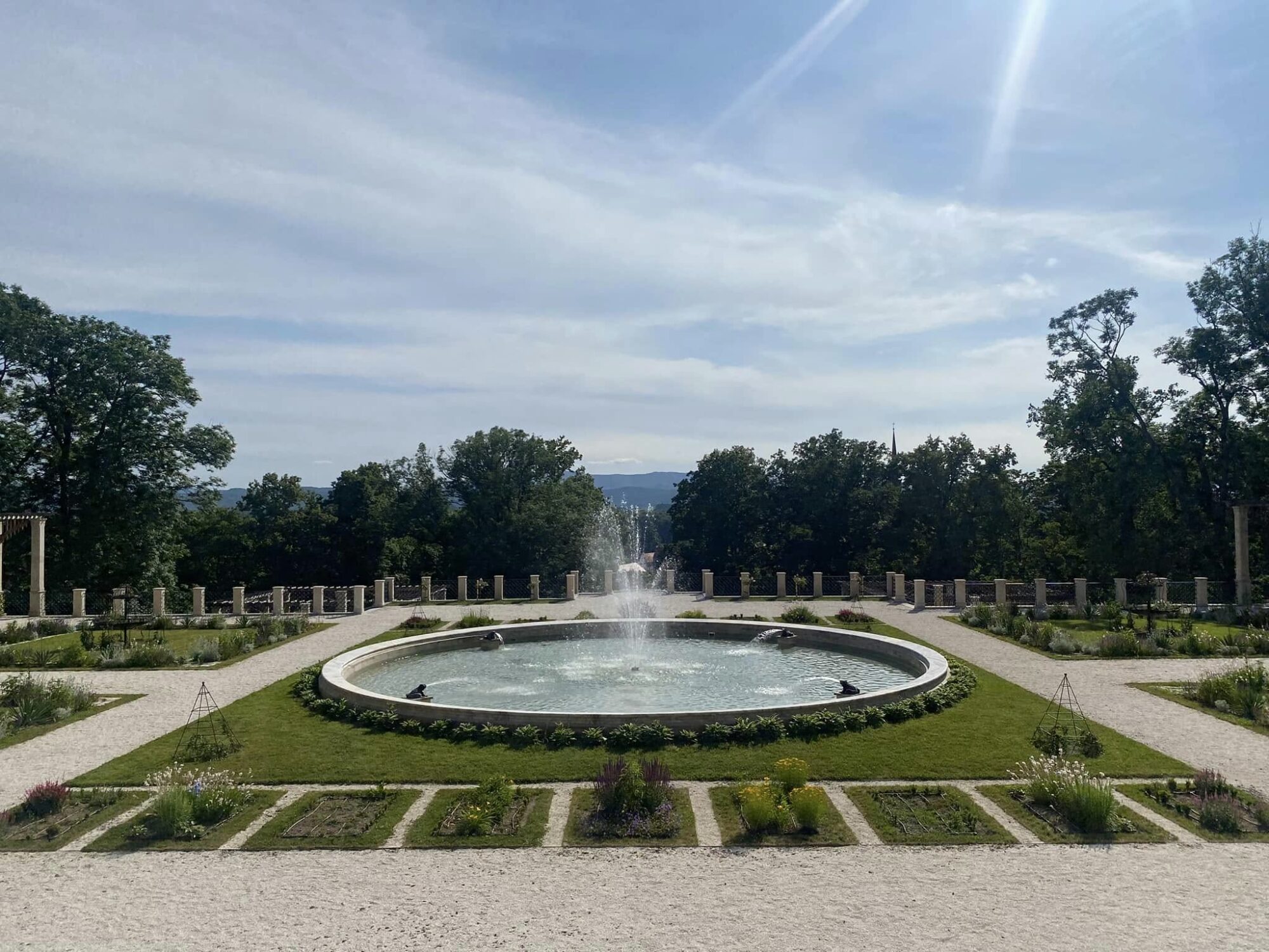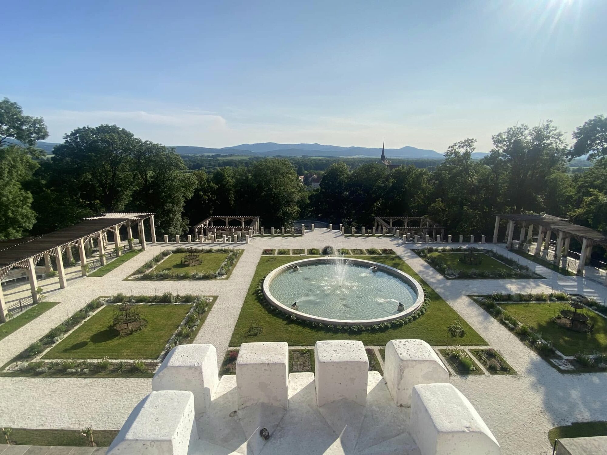 Pałac Marianny Orańskiej w Kamieńcu Ząbkowickim to skala XXL. Budowla w stylu neogotyckim położona na wzgórzu, w parku pełnym okazałych drzew. Do Zamku prowadzi pnąca się pod górę wybrukowana granitowym łupkiem droga. Z jej poziomu Zamek jest jeszcze wyższy. Budowę pałacu zleciła Marianna Orańska – córka króla Niderlandów Wilhelma I Orańskiego i jego pierwszej żony – Fryderyki Luizy Pruskiej, żona najmłodszego syna króla Prus – Albrechta Hohenzollerna. Marianna – kobieta wykształcona, inteligentna, przedsiębiorcza i na dokładkę piękna, szczęścia w miłości nie miała… Historia to dłuższa, burzliwa i smutna. Marianna dziedziczy po matce majątek w ziemi kłodzkiej i tam pomnaża go sprawnie – inwestuje w kolejne ziemie, lasy i rozmaite przedsięwzięcia biznesowe – od pieca hutniczego, poprzez farmy krów, hodowlę pstrąga, cegielnię, kamieniołomy marmuru (któż nie zna ,,białej marianny”?, a jest też zielona), po hutę szkła kryształowego w Stroniu (kupiłam tam kiedyś piękne kieliszki i wazony na kwiaty – jak jeszcze istniała ). Marianna dba o ludzi i rozwój regionu – buduje drogi, szpital, ochronkę, a przede wszystkim daje pracę. Projekt pałacu zleca architektowi Karlowi Schinkelowi (autor Zamku w Książu), ogród tworzy Peter Josef Lenne… Zatem same ówczesne tuzy… Budowa rozpoczyna się w 1839 r. i trwa z przerwami 33 lata. Kosztuje równowartość 3 ton złota… Warto zagłębić się historię Marianny – jej siłę charakteru, determinację, talenty i nieszczęśliwą miłość, ale też odwagę w dążeniu do zachowania godności. Tymczasem wracam do wrażeń z wizyty w pałacu i ogrodzie. Splądrowany pod koniec wojny, zniszczony przez Armię Czerwoną, nadpalony i rozgrabiony z wyposażenia jest obecnie w zaawansowanym stopniu odrestaurowany i to naprawdę jest imponująca robota! Ogród jest już prawie gotowy – dorasta.