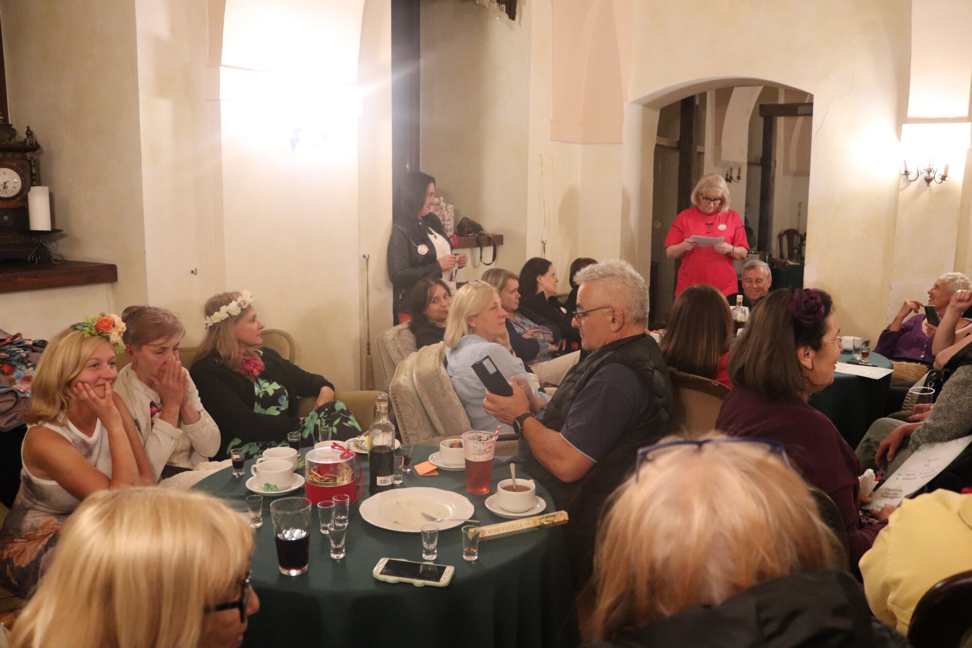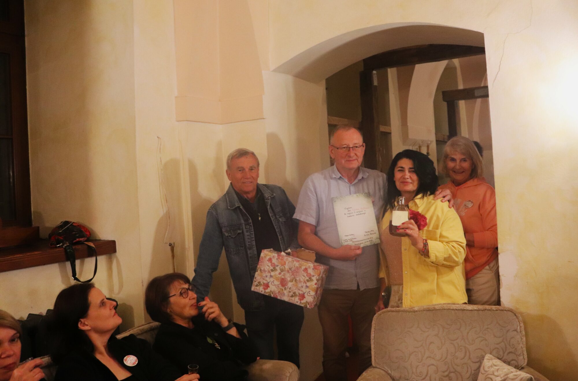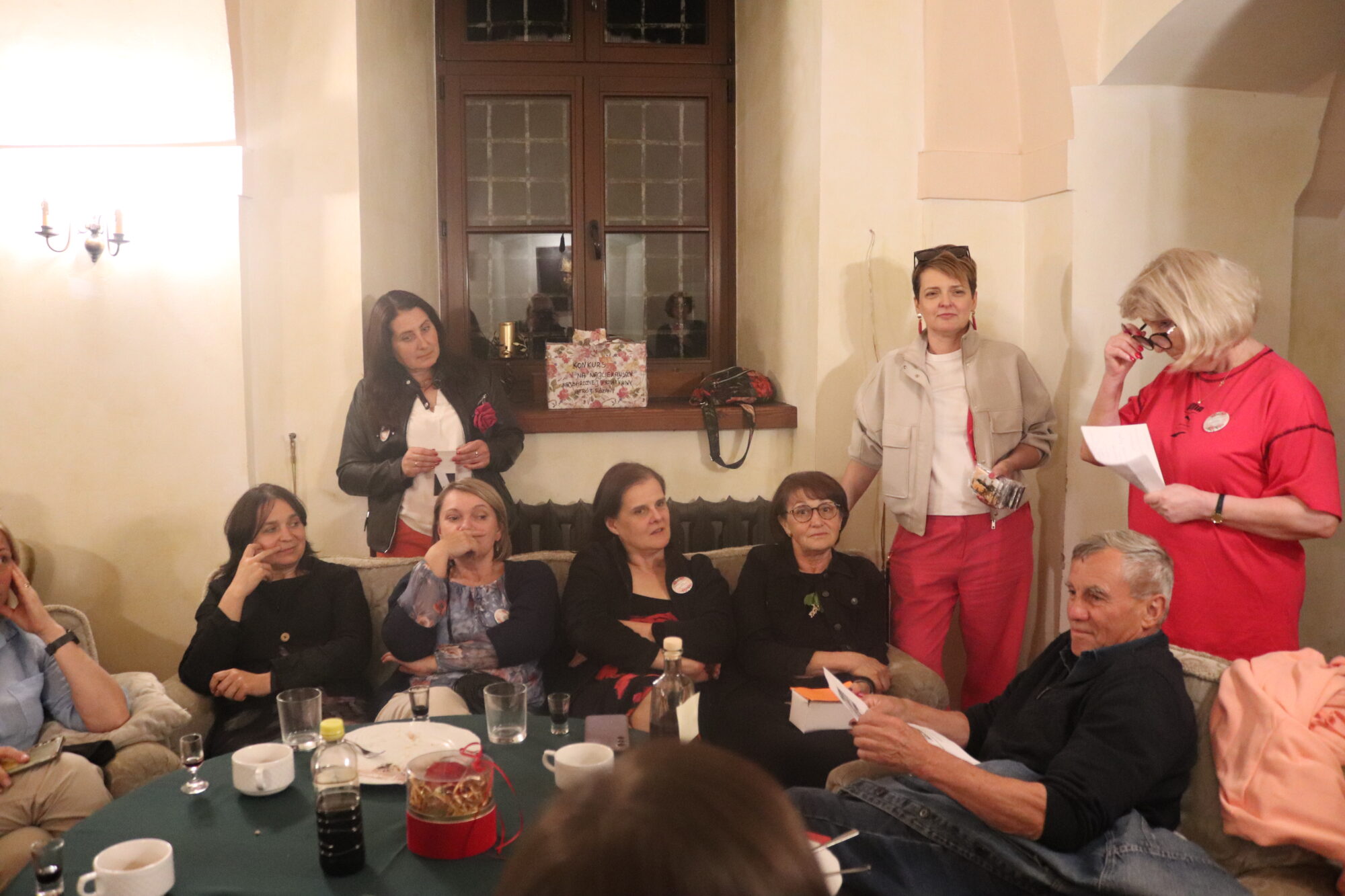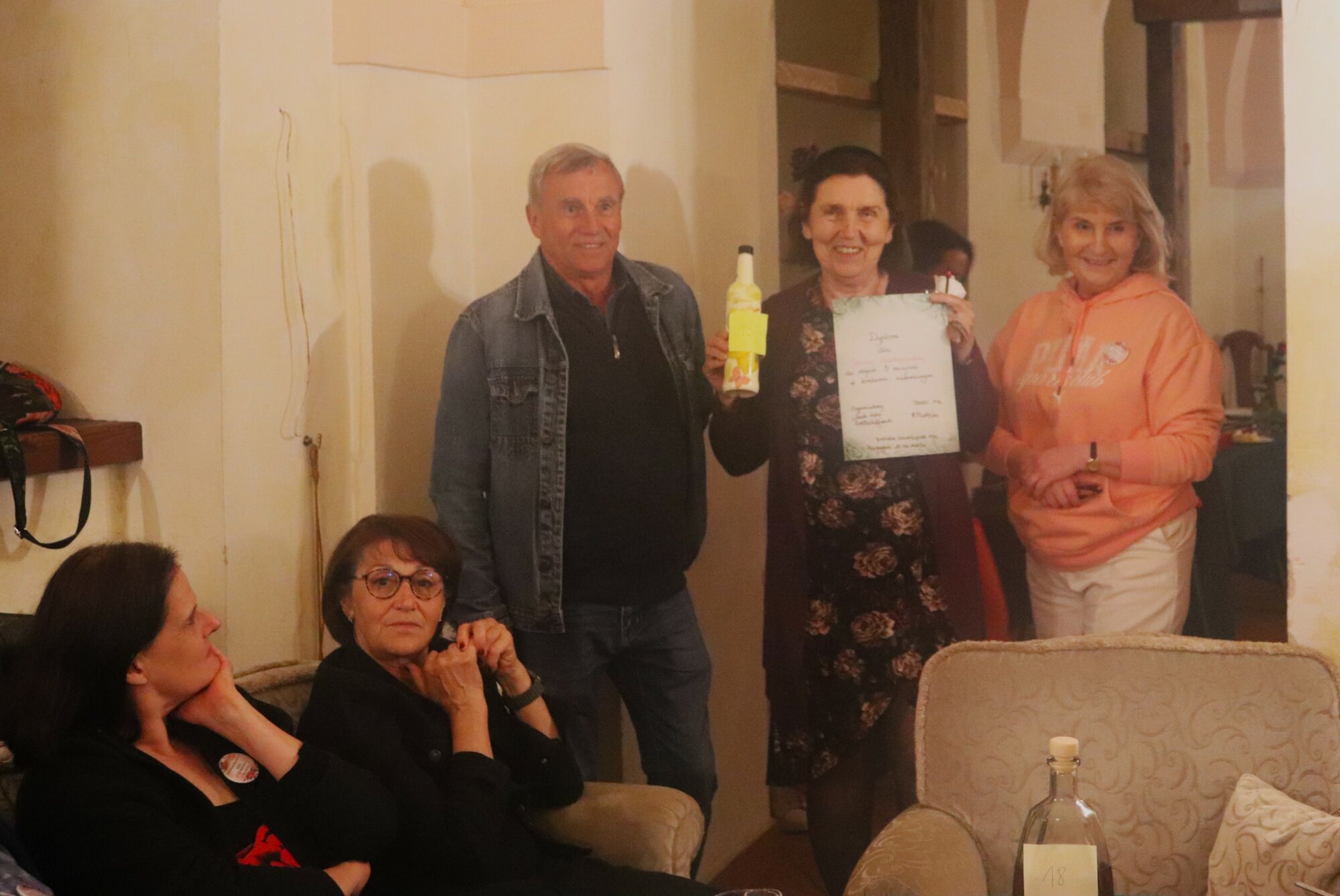 Degustacja, rozpoznawanie składników i ocena nalewek trochę trwało. Zrobiło się ciemno i zimno. Grupa przeniosła się więc do pomieszczeń zamkowych, gdzie odbyło się ogłoszenie wyników i poznaliśmy zwycięzców konkursu nalewkowego. Po ogłoszeniu wyników nalewki mogli już kosztować wszyscy – butelki poszły w ruch.
