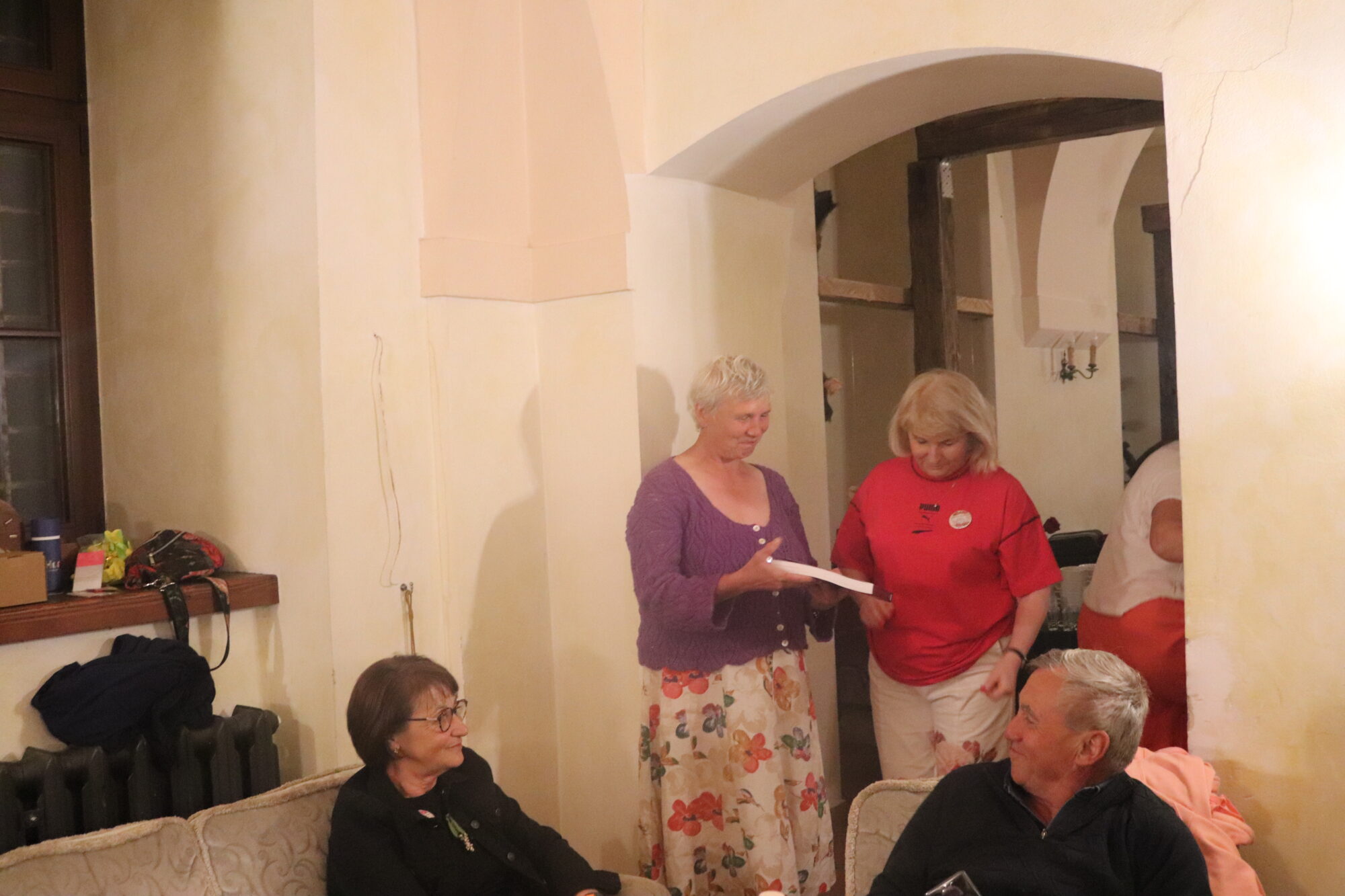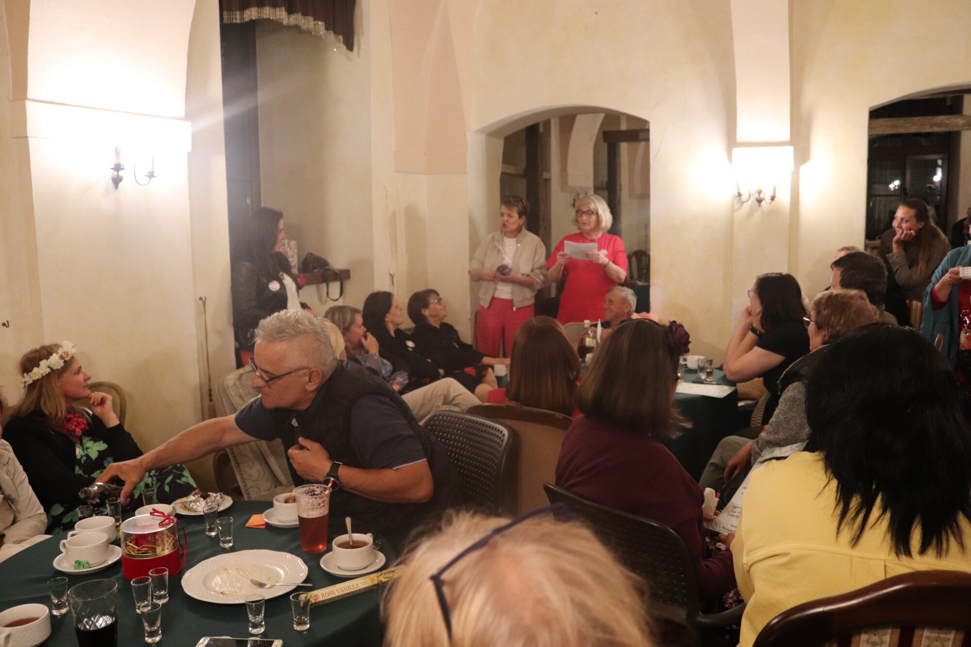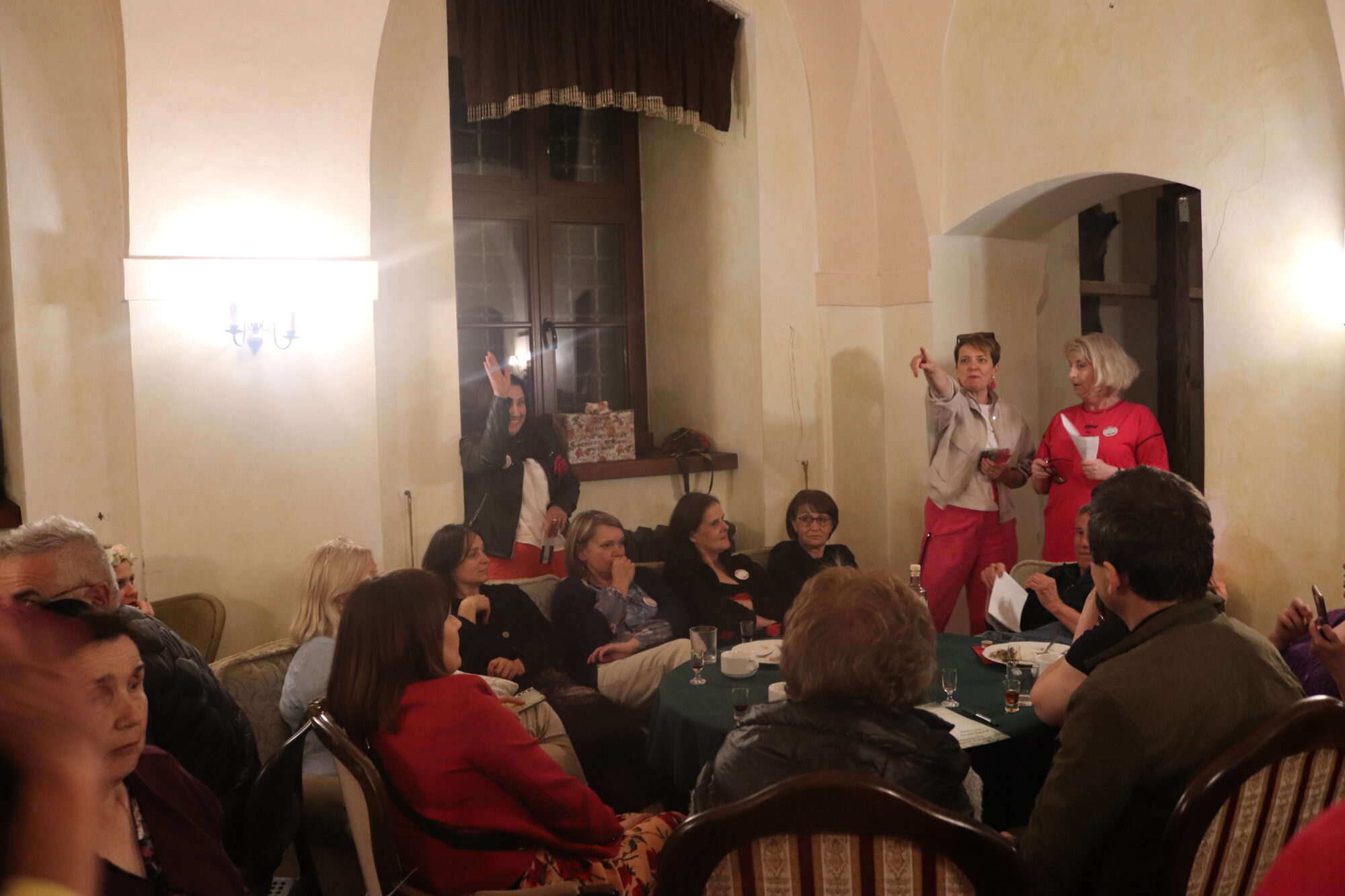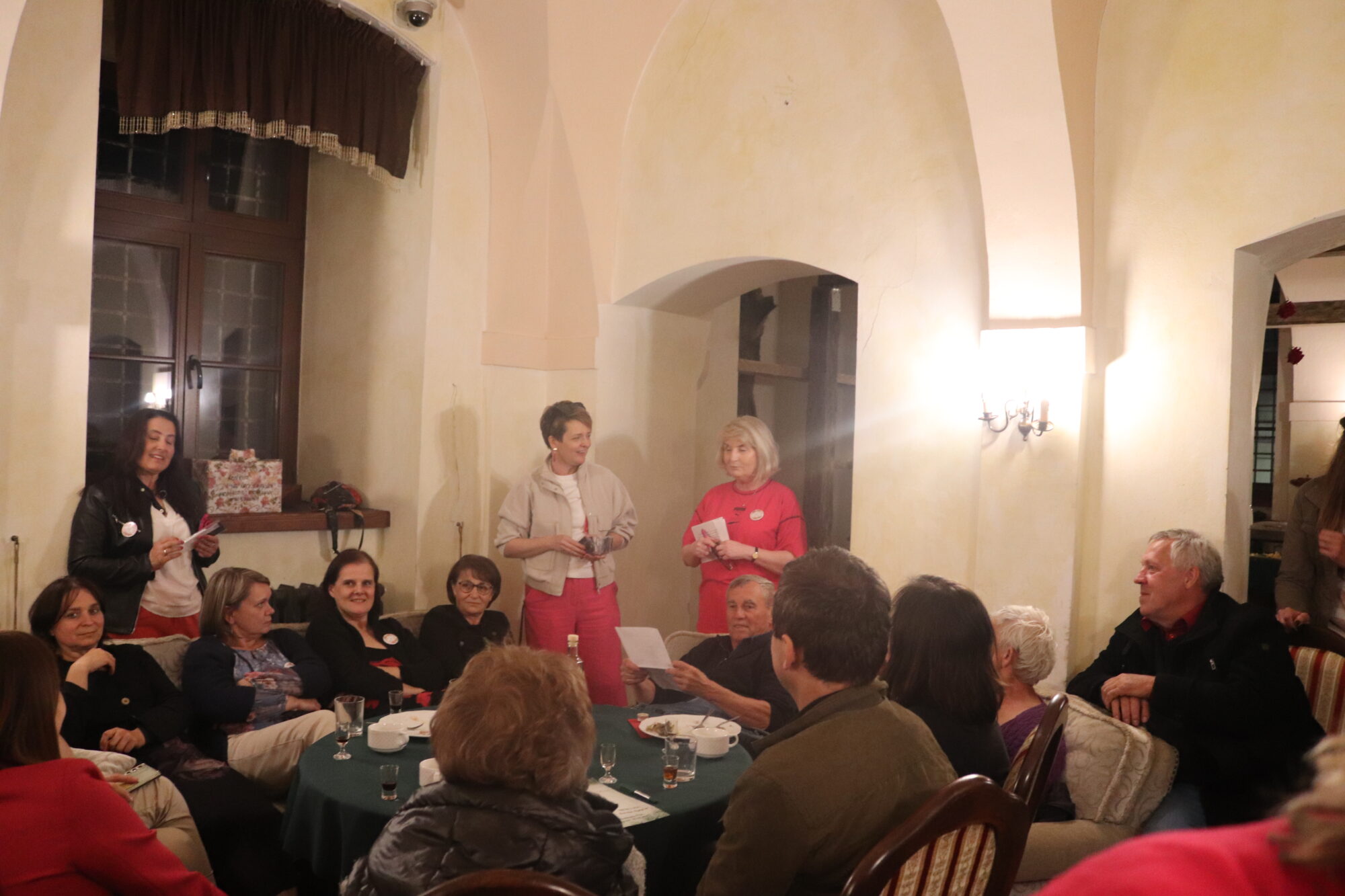 Degustacja, rozpoznawanie składników i ocena nalewek trochę trwało. Zrobiło się ciemno i zimno. Grupa przeniosła się więc do pomieszczeń zamkowych, gdzie odbyło się ogłoszenie wyników i poznaliśmy zwycięzców konkursu nalewkowego. Po ogłoszeniu wyników nalewki mogli już kosztować wszyscy – butelki poszły w ruch.