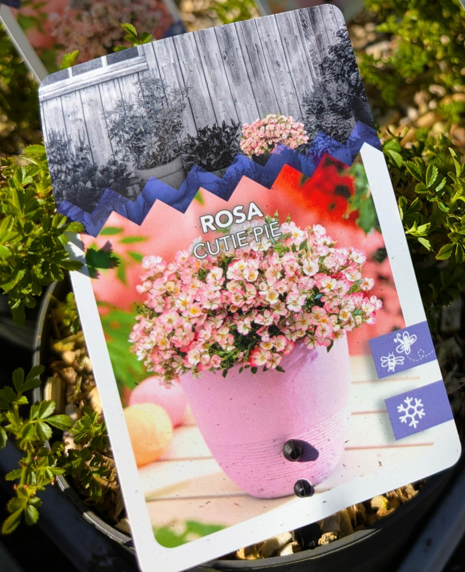 Róża 'Cutie Pie®’ Japońska róża miniaturowa ‘Cutie Pie’ Tomoki Yokota (Japan, 1984) o gęstym kulistym pokroju, bezkolcowa, dorasta do 20 cm wysokości. Preferuje stanowisko słoneczne lub półcieniste. Róża ‘Cutie Pie’ sprawdzi się sadzona w ogrodach skalnych. Polecana do sadzenia pod koronami drzew jako roślina okrywowa. Nadaje się również do uprawy w pojemnikach na balkonach i tarasach.