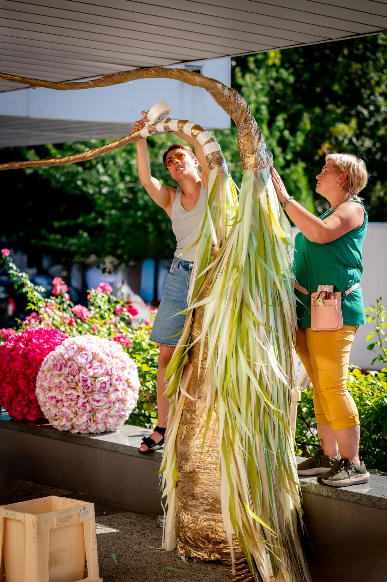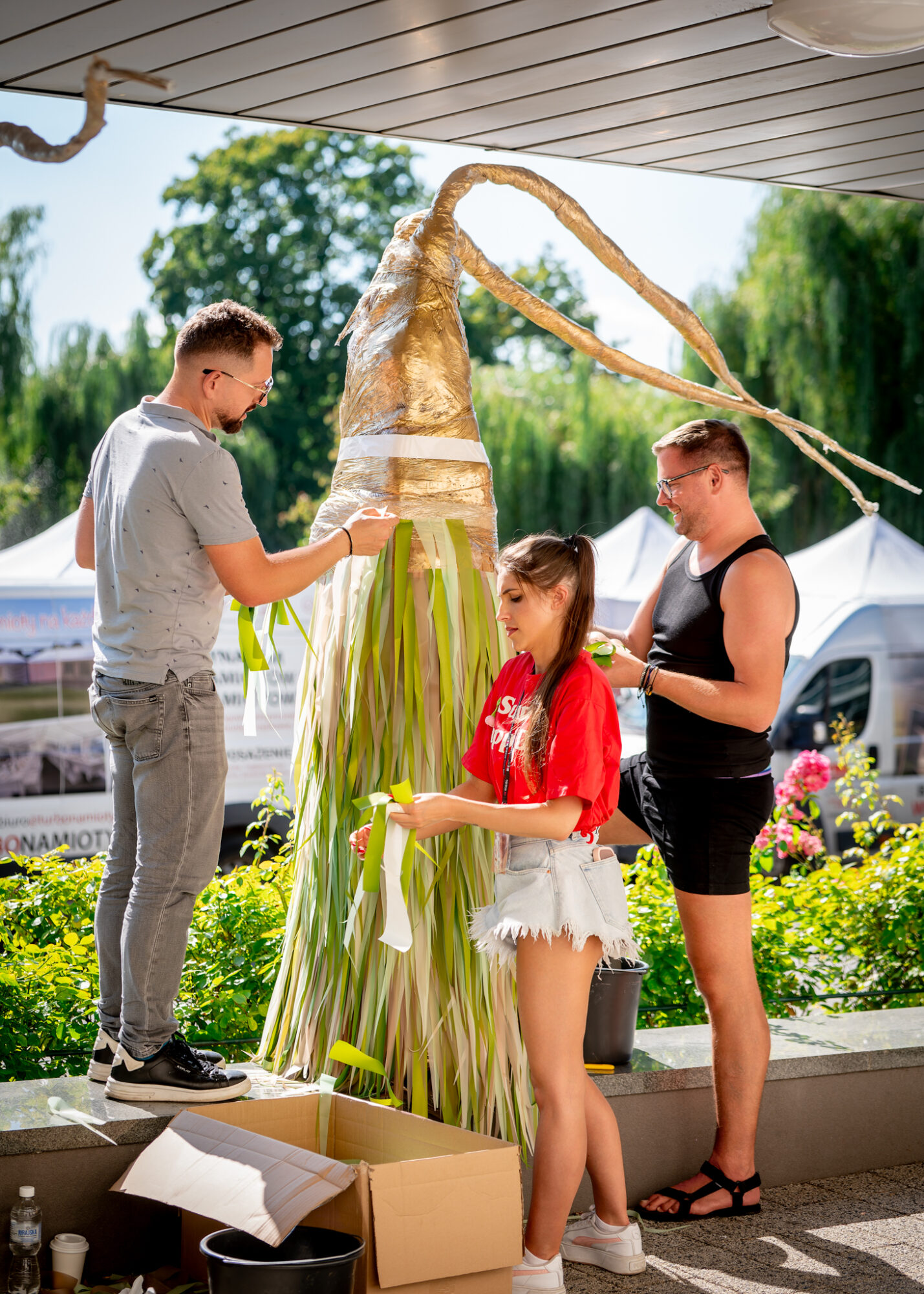 51. Święto Róży zaraz się rozpocznie – oficjalny start 5 września godz.20:00. Floryści pracują niestrudzenie, gdyż na wieczór wszystko musi być gotowe. Poniżej na zdjęciach widać, że humory dopisują i każdy wie dokładnie co ma robić. Zadania zostały rozdzielone już dawno temu, a teraz pora zrealizować projekty.