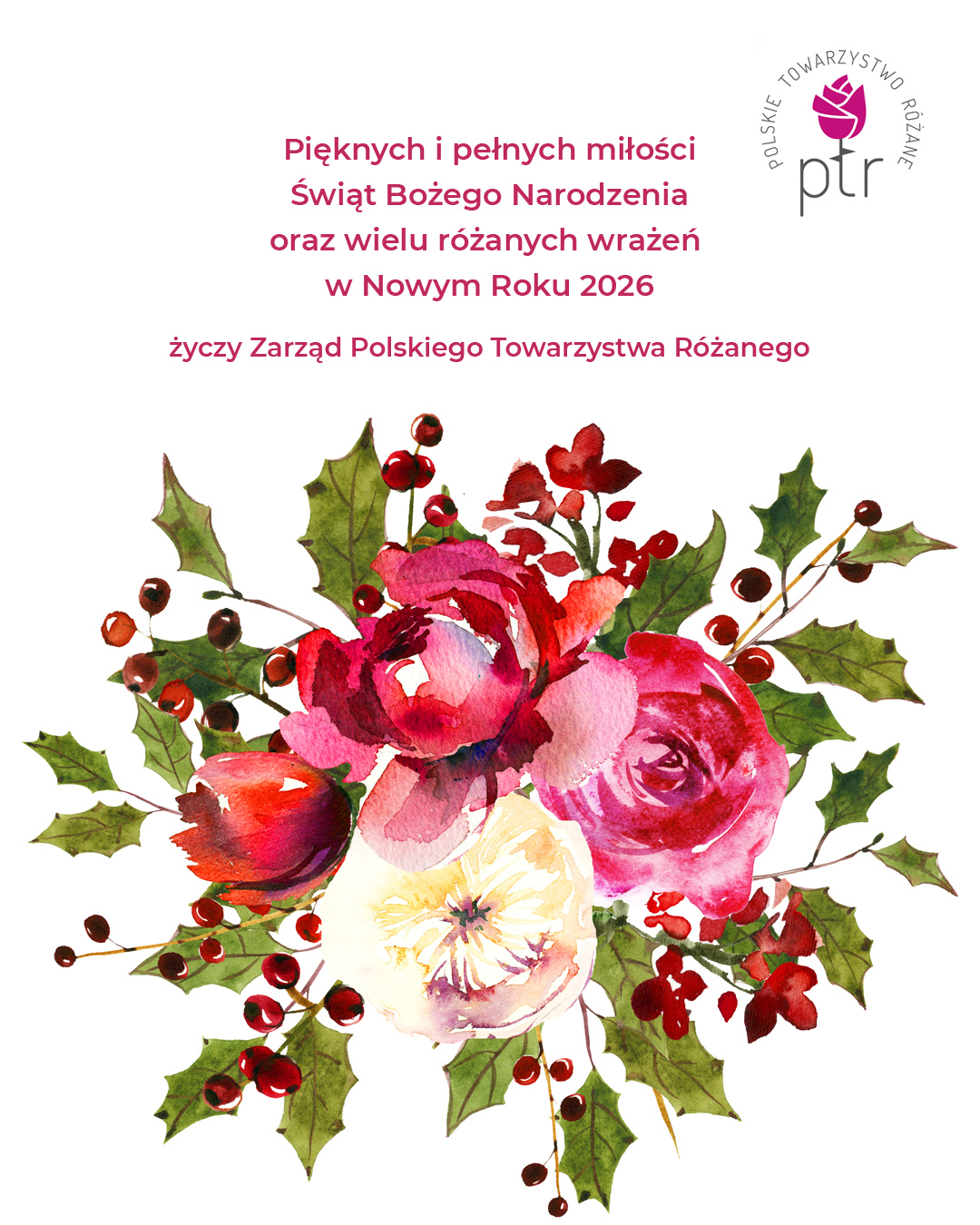 Z okazji nadchodzących Świąt Bożego Narodzenia składam wszystkim członkom Polskiego Towarzystwa Różanego, przyjaciołom naszego Towarzystwa oraz miłośnikom róż, najserdeczniejsze życzenia – niech ten świąteczny czas napełni Was siłą i wiarą w lepsze jutro, a miłość i radość zagości w waszych domach.