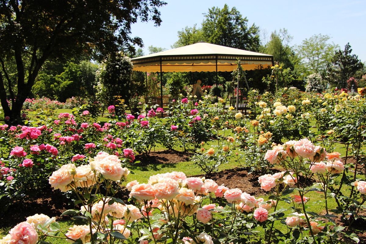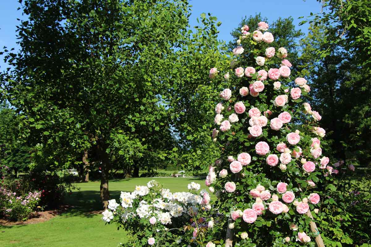 - Kolekcja ponad 600 współczesnych odmian w Górnym Ogrodzie Różanym