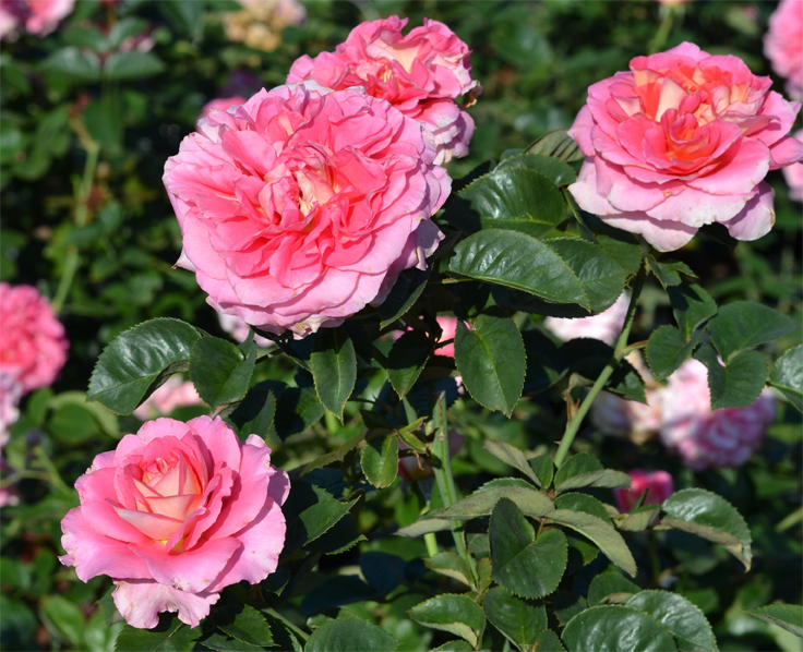 Silne krzewy o wyprostowanych pędach okrywają bujne, zdrowe liście. Kwitnienie jest obfite i długie, dzięki wyjątkowej trwałości kwiatów.