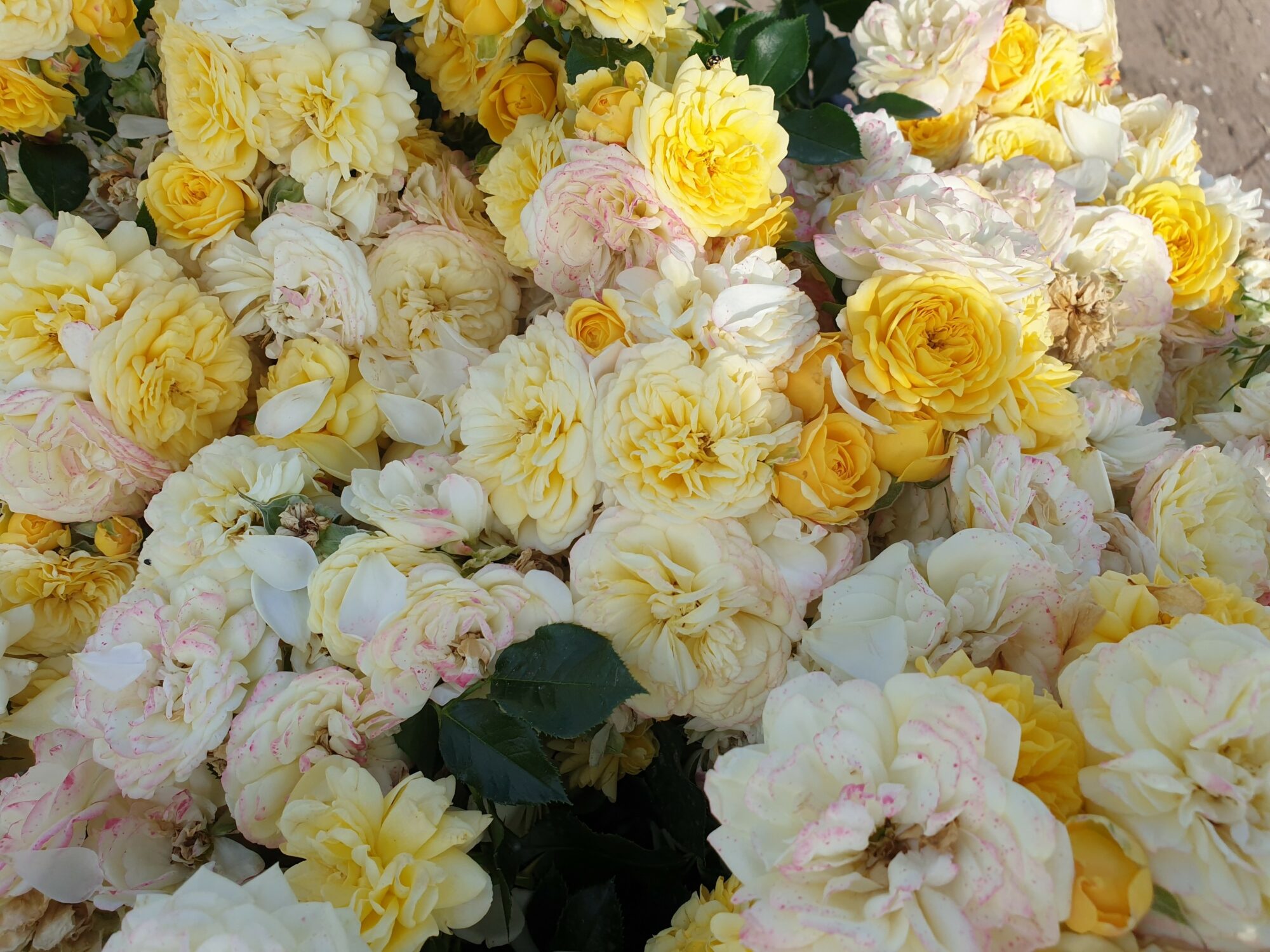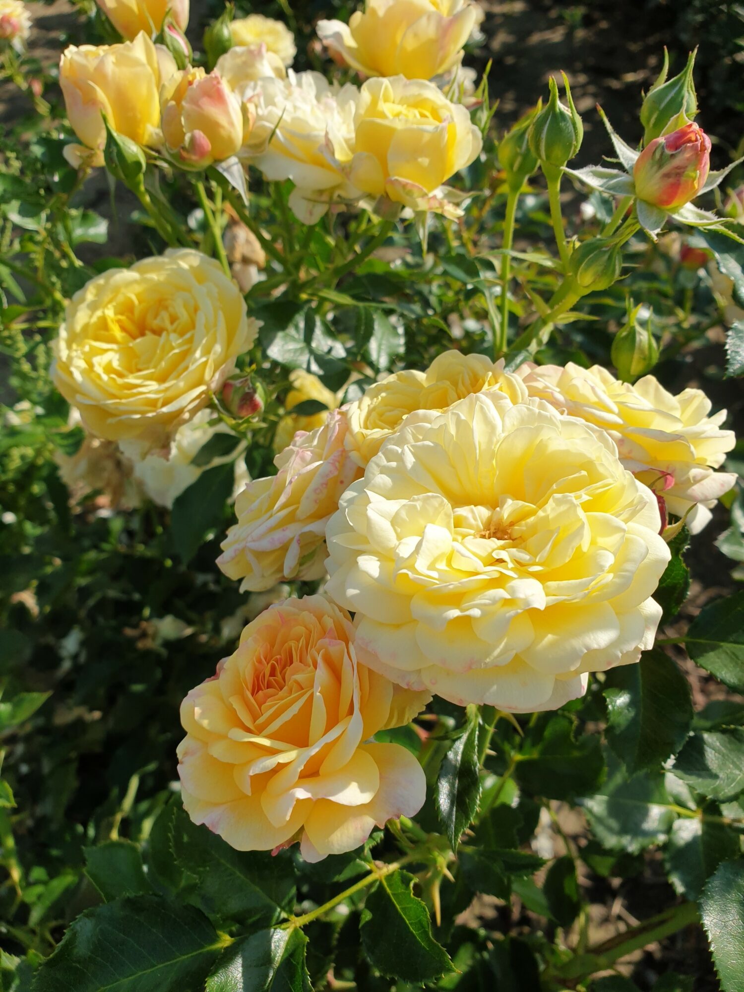 Róża rabatowa floribunda, kwiaty: kremowo-żółte w różnych odcieniach, barwa zmienia się z czasem, kwitną w bardzo dużych kiściach, tak że jedna gałązka może być już małym bukietem; powtarza kwitnienie do jesieni, pachnąca, mrozoodporna, wysokość i szerokość ok. 60-70 cm.