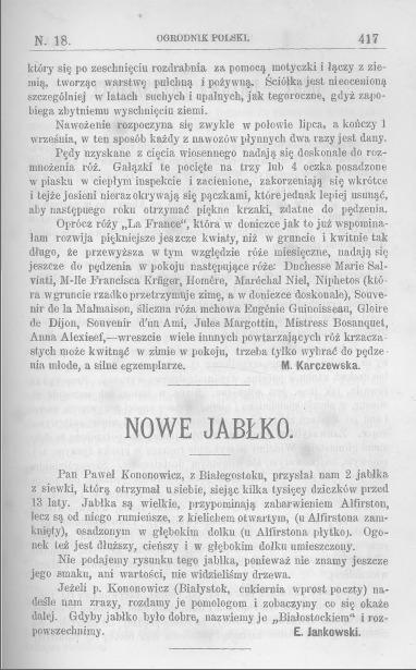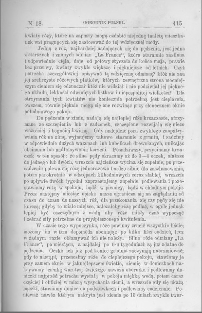 “Róża ‘La France’ w doniczce i w gruncie”, dwutygodnik “Ogrodnik Polski” z 1895 r. R.17, nr 18