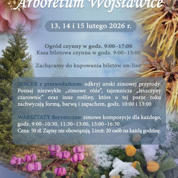 Drodzy miłośnicy Ogrodów szykujcie się na zimową wizytę w Arboretum Wojsławice w dniach 13–15 lutego 2026 r.(piątek, sobota, niedziela). Informacja podana jest dużym wyprzedzeniem, ale Arboretum otwiera swoje podwoje tylko na 3 dni w zimie i zaprasza na spacer po zaśnieżonych alejkach, zachwycające krajobrazy i niezapomniane chwile gwarantowane!